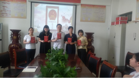 全体员工党员齐唱国歌,嘹亮的歌声极大的增强了大家的国家荣誉感和民族自豪感,满怀着对党的无比忠诚,共同祝愿伟大的祖国更加繁荣昌盛。员工第一、第二党支部书记李丹阳老师和薛小品老师分别宣读了第一、二季度过“政治生日”的党员名单,并向过“政治生日”的党员赠送“政治生日”贺卡。这种庄重的政治仪式,进一步增强了党员的归属感、荣誉感和责任感,提醒和激励党员牢记入党誓言,不忘初心使命,勇于担当奉献,以实际行动践行全心全意为人民服务的宗旨,永葆党员的革命本色。