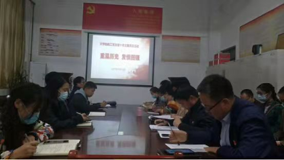 10月14日下午,教工党支部在1422党建活动室开展“重温历史,发奋图强”主题党日活动,教工党员参加本次活动,主题党日活动由副经理、教工党支部书记王惠主持。