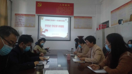 大家观看了视频《党的十九届六中全会精神解读》《永恒的赶考路,永远的答卷人》。通过历史回顾,让员工党员更加深刻地了解中国共产党全心全意为人民服务的宗旨,并激励广大青年党员不忘初心、牢记使命,极大地调动了大家的热情和干劲,激发了大家的爱党爱国情怀。学习文件及观看视频之后,大家围绕本次活动主题进行讨论并发表了感悟。全体员工党员重温入党誓词,庄严的宣誓使全体党员再次接受心灵的净化和洗礼,铭记庄严的承诺,用实际行动践行一名共产党人的初心和使命。活动最后,顾亚菲老师和薛小品老师分别作了总结,要求员工党员在疫情防控的特殊形势下,要严格遵守校规校纪,守纪律,讲规矩,以更高的标准严格要求自己,做一名优秀的共产党员。