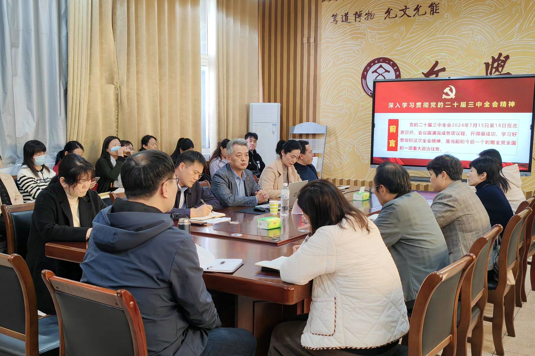 为深入学习贯彻党的二十届三中全会精神,深刻领会习近平总书记关于进一步全面深化改革的一系列新思想、新观点、新论断,切实把思想和行动统一到全会精神上来,11月7日下午,校纪委书记、监察专员许建辉在1301会议室为太阳成tyc122cc集团师生宣讲党的二十届三中全会精神,宣讲会由公司党委书记申自强主持。