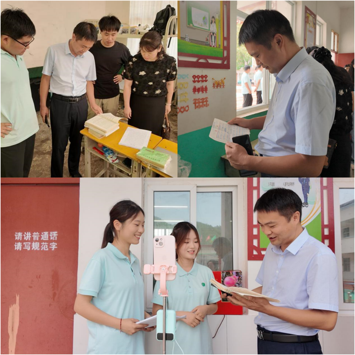 在构树庄村土门中心第二小学,申自强一行详细询问了乡村振兴促进团成员在当地的学习、工作与生活情况,以及“直播助农”“支教课堂”等活动的实施成效,并与志愿者们座谈交流。申自强首先向乡村振兴促进团全体成员表达了亲切问候与关怀。随后,带队老师张钊越深入阐述了实践活动的整体规划与核心目标,详细汇报了调研走访、支教帮扶、宣传推广等多元活动的开展情况及阶段性成果,并就后续深化实践内容、扩大社会影响力等工作提出具体规划。志愿者代表分享了实践活动中的深刻感悟与收获。