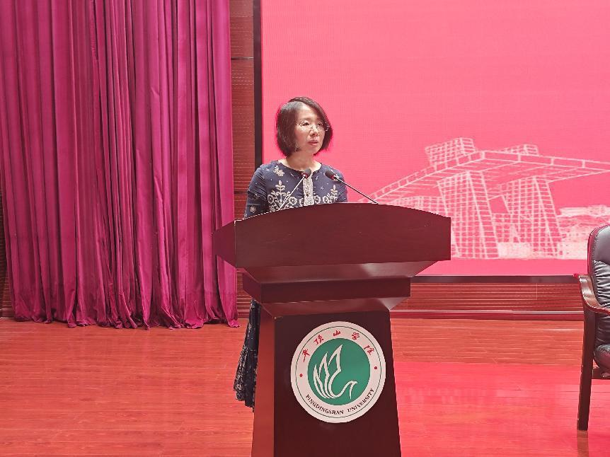 教师代表鲁向黎围绕公司学术特色,介绍了教育实习、学术讲座、第二课堂等实践平台,结合2018级毕业生返校的感人故事,鼓励新生通过读书、思考、运动、写作等提升自我,勇于直面挫折。