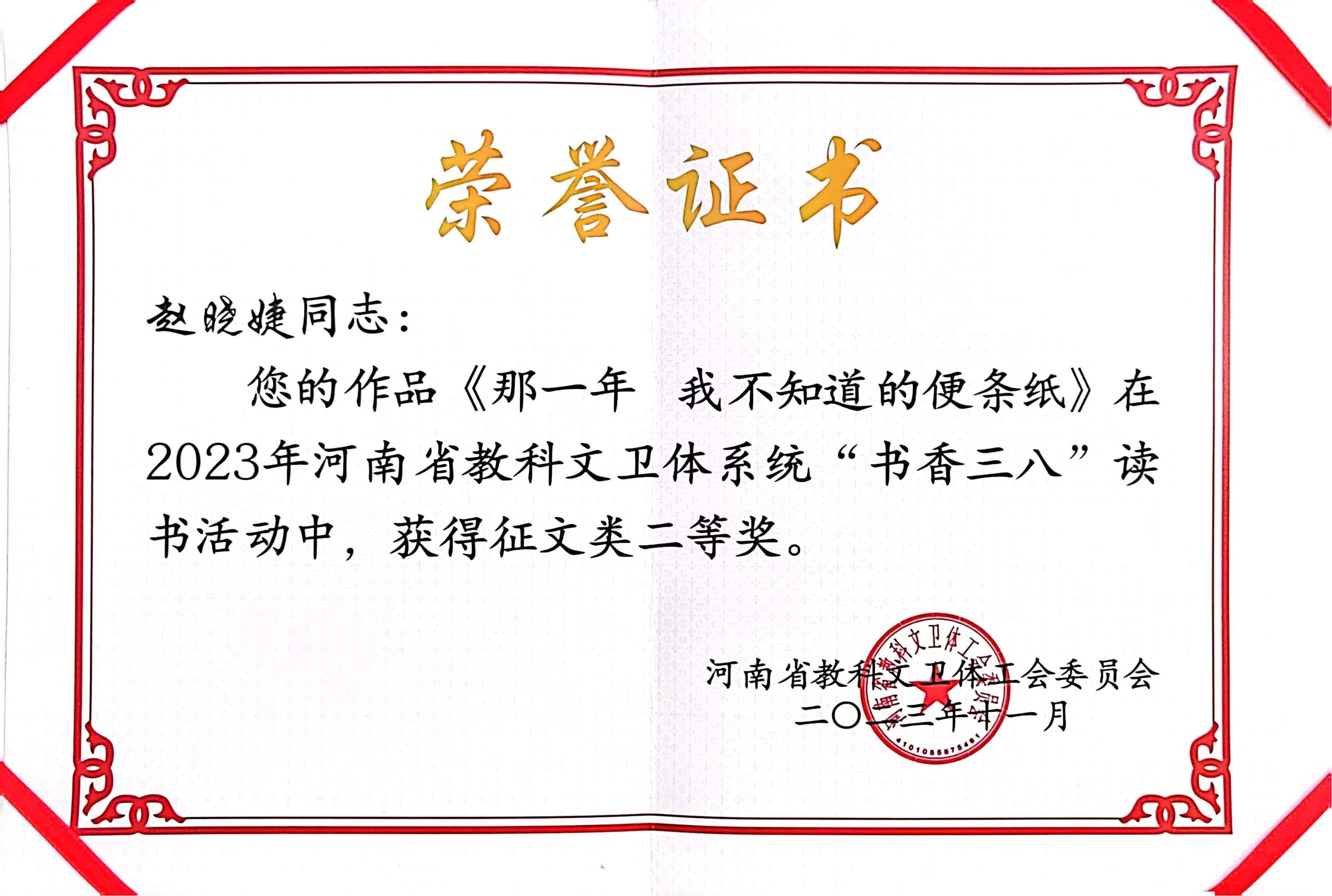公司女教师在2023年河南省教科文卫体系统工会“书香三八”读书活动中获佳绩