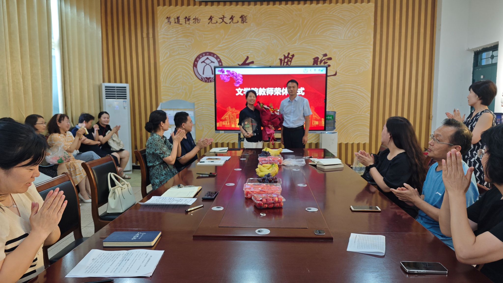 6月27日上午,在1301会议室,公司为潘付云老师举办荣休仪式。公司领导班子成员,在职在岗教师参加仪式。仪式由公司党委副书记苏小玲主持。