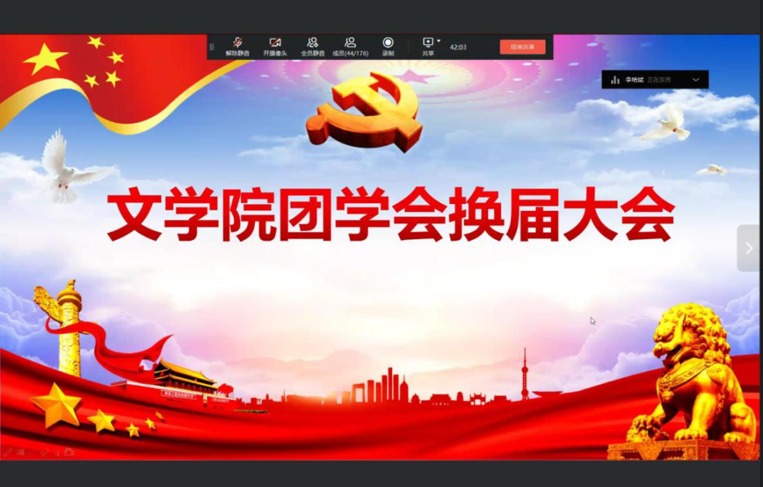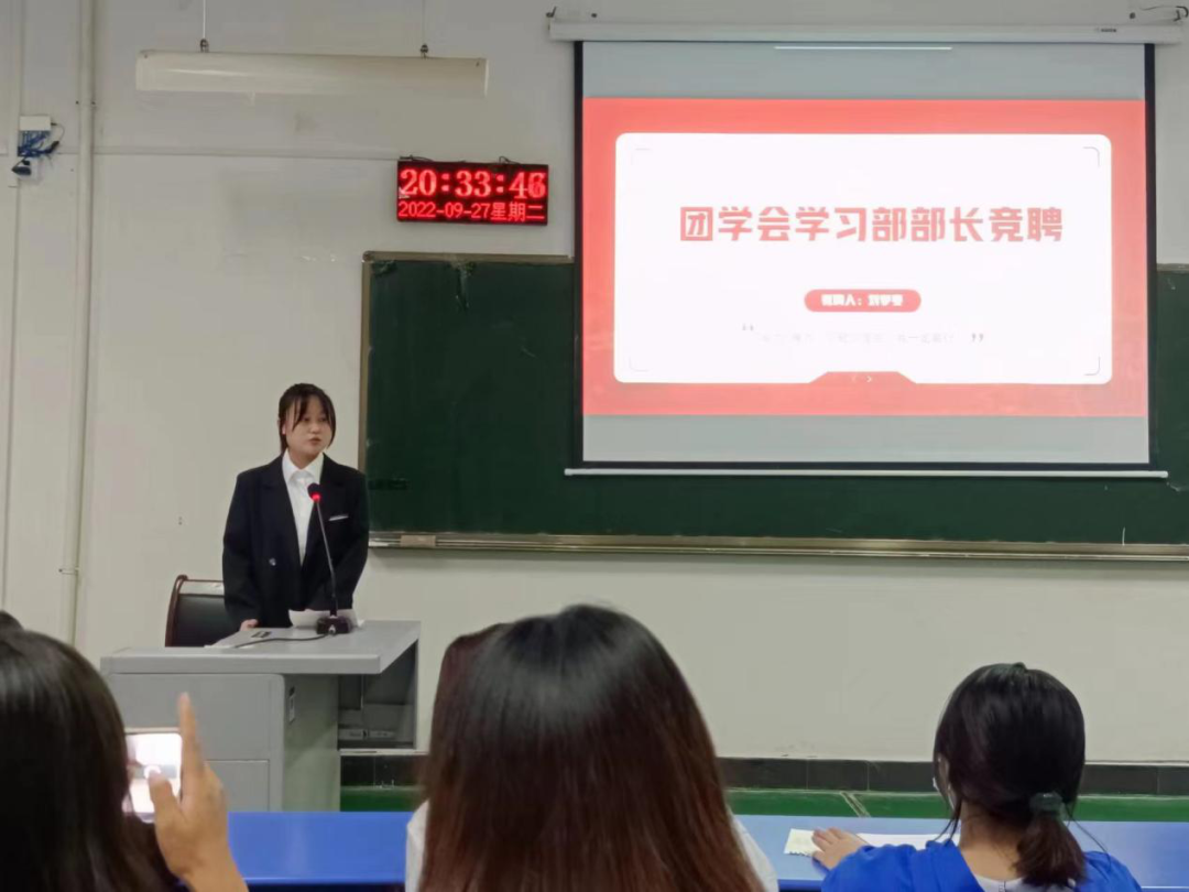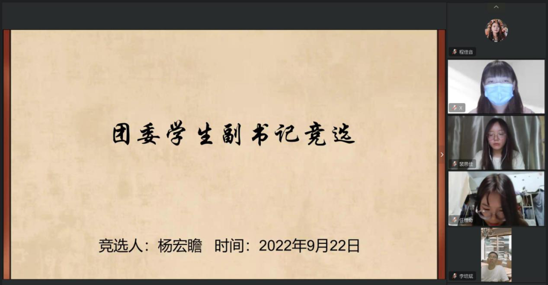 9月27日晚,太阳成tyc122cc集团团学会部长换届大会在1406教室采取线上和线下的方式共同开展。太阳成tyc122cc集团团委书记马继文、太阳成tyc122cc集团团委副书记李丹阳、主席团成员及参与竞选的部长现场参与此次换届会议,团学会其他成员线上观看并参与了此次换届大会。