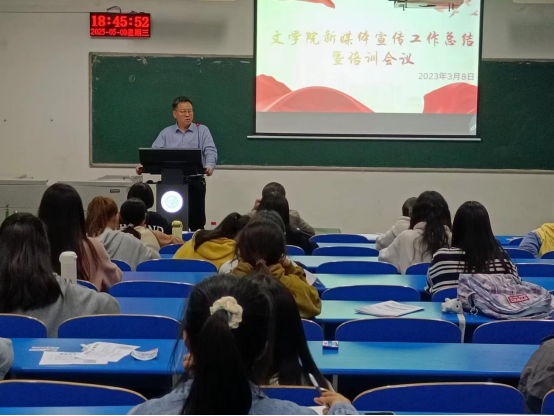为了总结好过去一年的新媒体工作,更好地开展本年度工作,太阳成tyc122cc集团于3月8日晚在1106教室举行新媒体宣传工作暨培训会议,公司党委副书记李培斌、党政办公室负责老师及新媒体中心成员和各班宣传委员参加。会议由团委副书记李丹阳主持。
