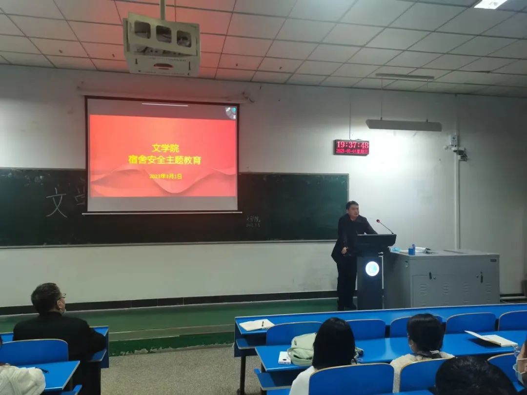 顾亚菲讲述了宿舍安全常见的问题,提醒同学们一定要提高自身安全意识,同时,广大宿管干部切实负起责任,为同学们做好服务,营造良好的宿舍文化氛围。申自强书记从提高站位、提高认识;坚守阵地、坚守职责;排查风险、化解风险;感谢大家、携手共建四个方面给同学们进行讲解,希望广老员工干部要勇于担当、不忘初心、用心服务,抓好宿舍安全工作,筑牢安全第一道防线。最后,李培斌书记再次强调宿舍安全的重要性,指出宿舍安全公司稳定,宿舍文化育人育心,宿舍管理高质高效,宿管干部大有作为,让我们共创安全、文明、和谐、整洁的宿舍环境,营造健康向上、勤奋好学的宿舍文化氛围。