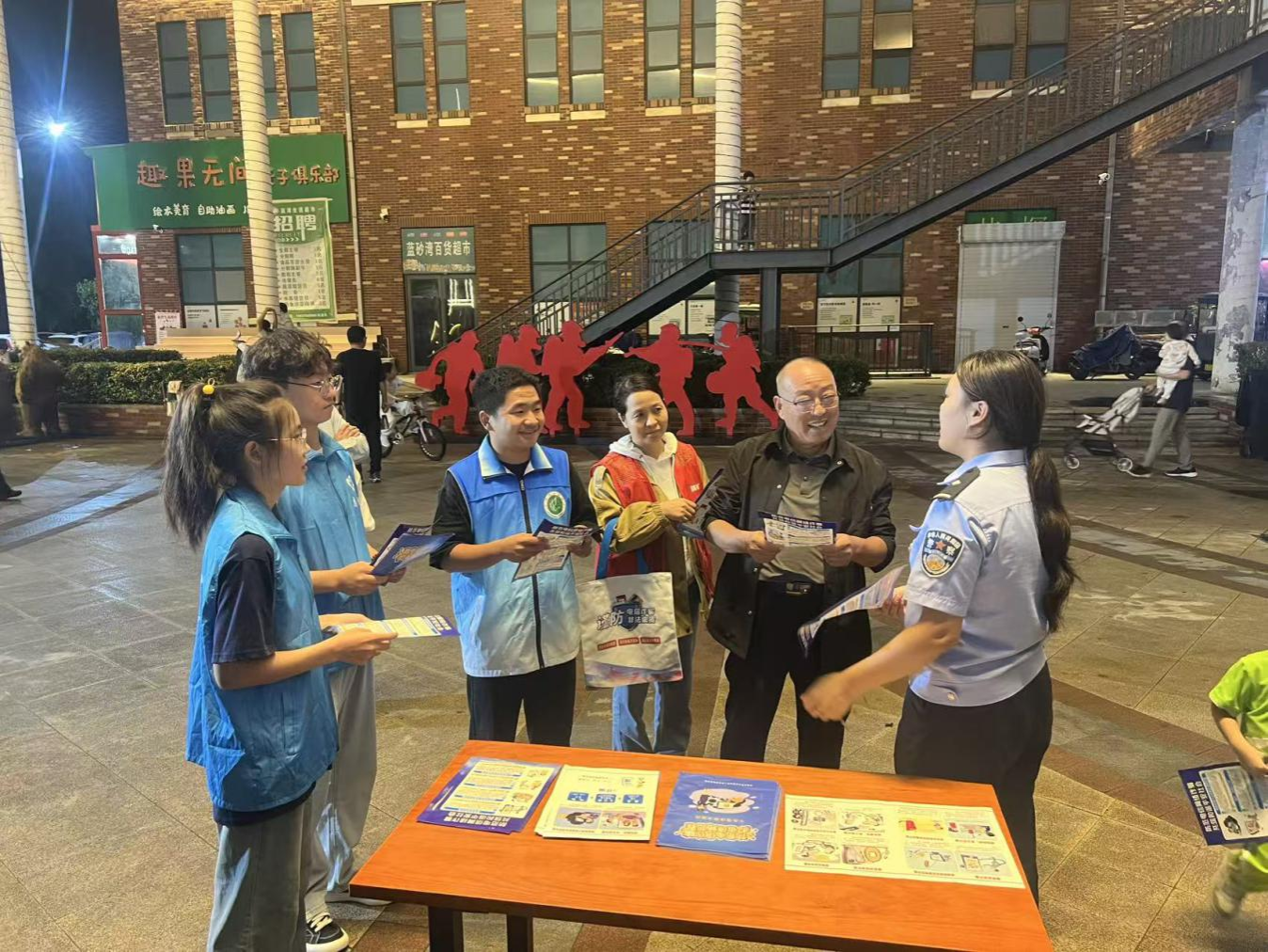 与此同时,员工志愿者与蓝湾社区网格员化身“反诈宣传员”,一边向过往居民发放《反诈知识手册》《防范电信网络诈骗指南》等宣传材料,一边通过“你问我答”的形式,耐心细致地解答居民提出的各种疑问。此外,志愿者们还主动协助社区工作人员,在小区单元门口、宣传栏、电梯间等醒目位置张贴反诈海报,让反诈知识随处可见、深入人心。