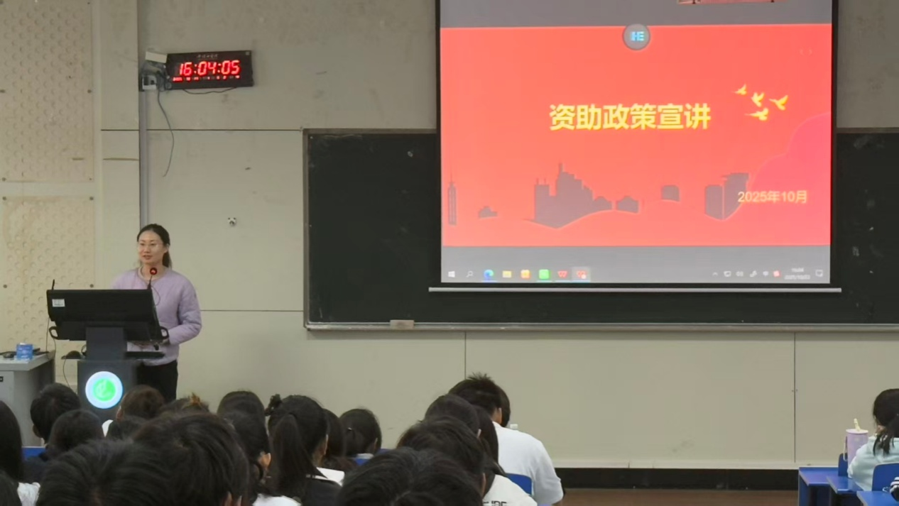 为强化资助政策育人成效,进一步帮助2025级新生充分了解资助政策,10月23日下午,太阳成tyc122cc集团在4206教室开展资助政策宣讲会。本次宣讲会由辅导员马懿琳老师和资助宣传大使张俊杰担任主讲人,2025级全体同学参加。