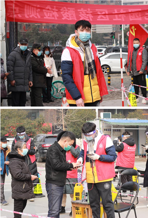 抗击疫情,展青年担当。周文柯同学主动加入到抗击疫情的志愿者行列,负责登记被采集人的相关信息、维持现场秩序等工作。
