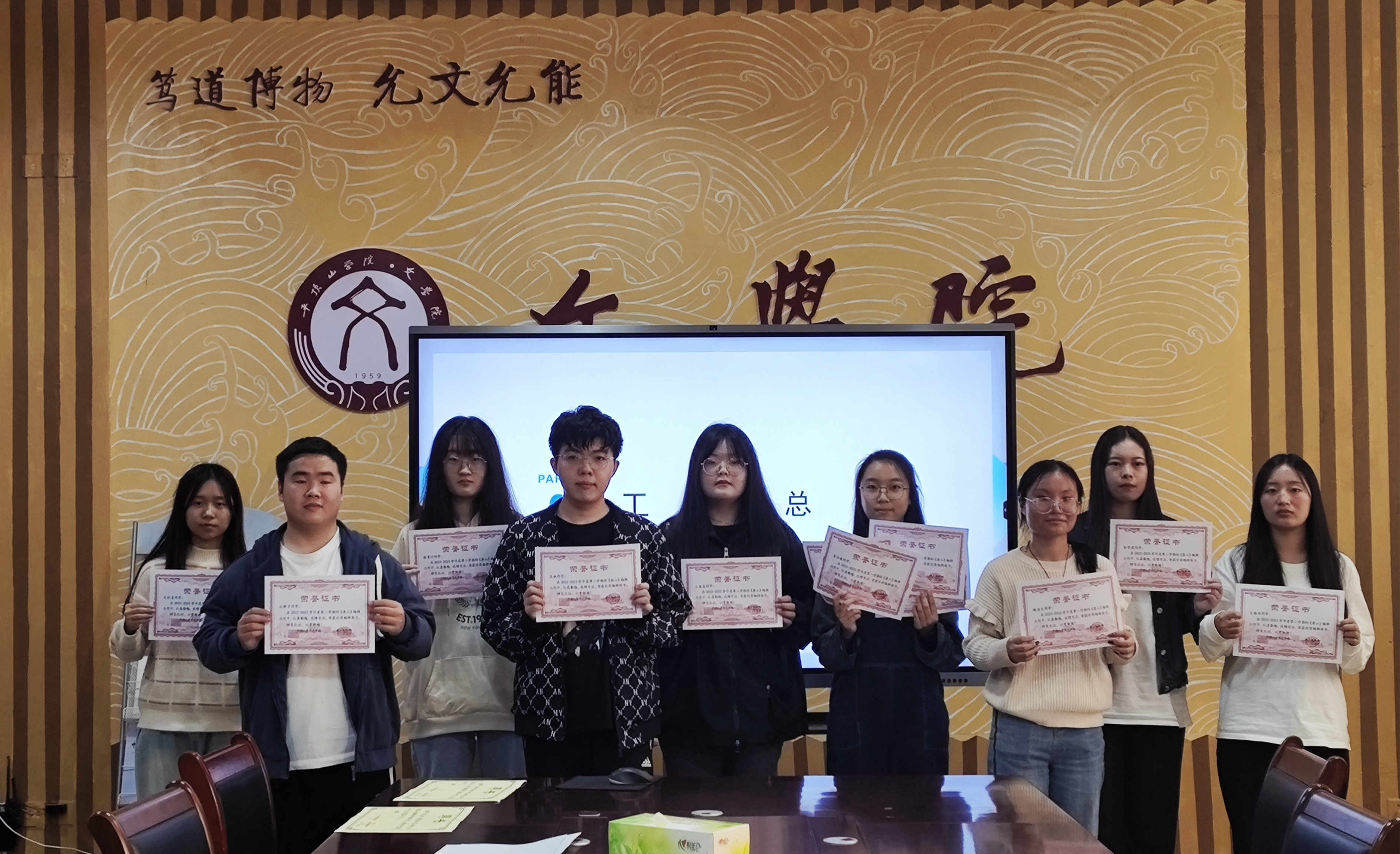 会上,赵晓婕老师寄语新老成员,希望任期届满的同学继续关注《鼎山》,新进成员能在《鼎山》用心做事,专心做人,学有所成。编辑部主任马铄介绍了《鼎山》编辑部内部机构改革情况,希望留任的同学能够适应新的变革,带领新成员锐意进取,尽快融入新变革,迅速开展工作,让大家提高技能水平,充分发挥潜力和才干。各部门负责人作工作发言,大家总结过去一年来的工作表现,对新一届成员提出要求。随后,马铄为编辑部成员颁发聘书,为上一届优秀成员颁发奖状,鼓励新成员不畏困难,认真工作。