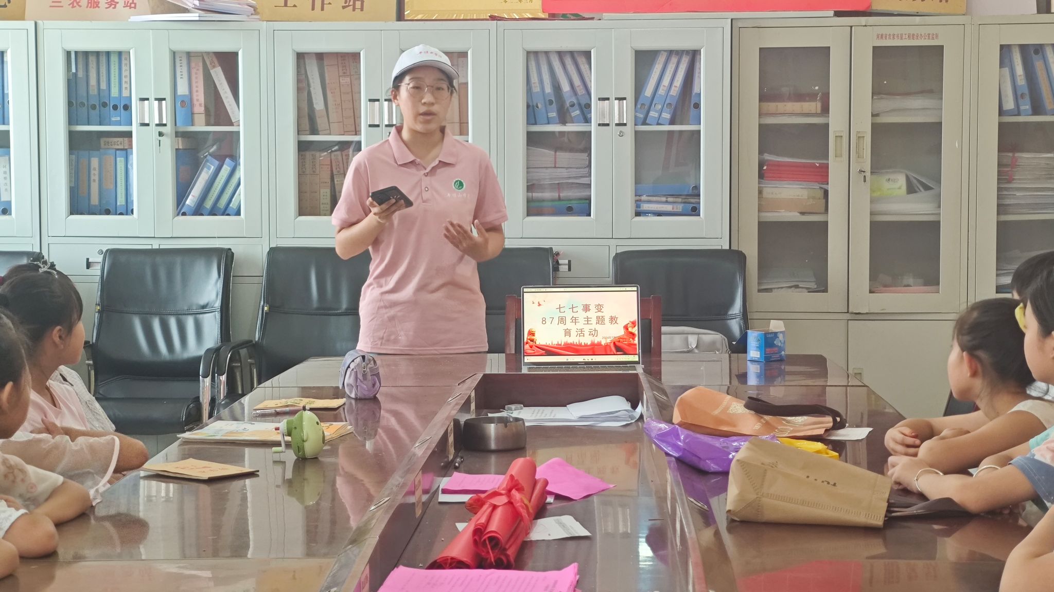 课堂上,支教老师向小朋友们简述了“七七事变”的背景、事件经过和历史意义,带领大家回顾了中国共产党的百年奋斗历程,一起追寻红色记忆,缅怀革命先辈的丰功伟绩,这帮助小朋友们从红色传统、红色文化、红色基因中汲取前行的力量,树立正确的世界观、人生观、价值观。