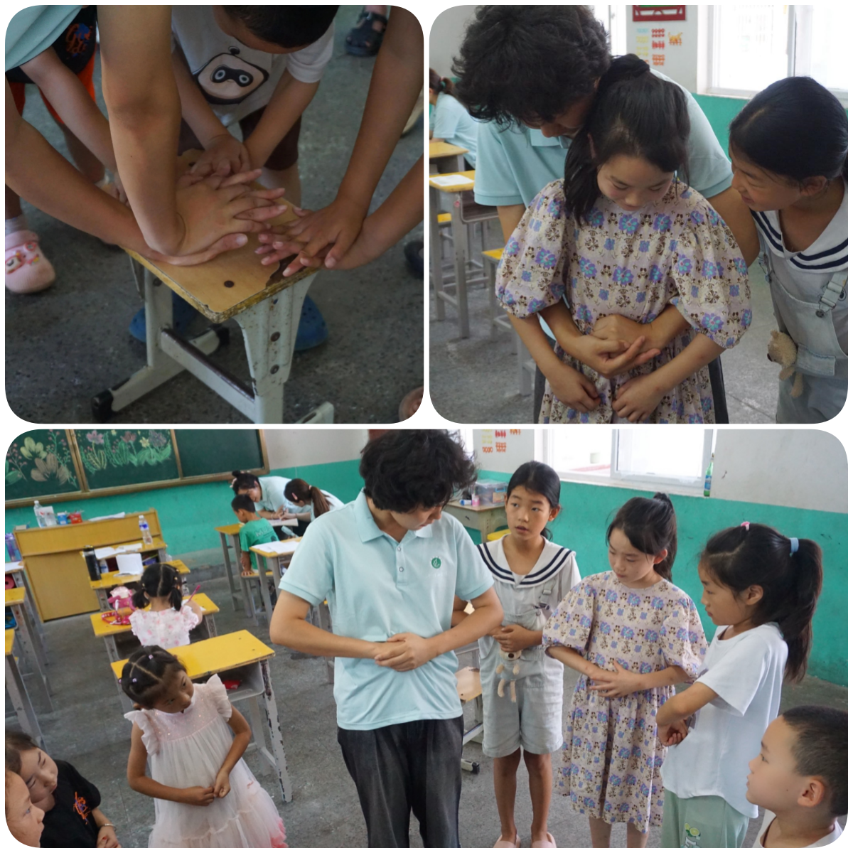 在欢快的音乐课堂尾声,志愿者们别出心裁地将海姆利克急救法等实用急救知识融入教学。通过生动有趣的演示与通俗易懂的讲解,孩子们在轻松愉悦的氛围中,掌握了这项关键时刻能守护生命的重要技能。当跳动的音符碰撞严谨的医学知识,美育与生命教育的融合悄然发生——音乐启迪心灵,知识守护生命,这正是“以美育人、以爱培元”支教理念的生动诠释,也让美育在乡村教育中绽放出更具温度与深度的光彩。