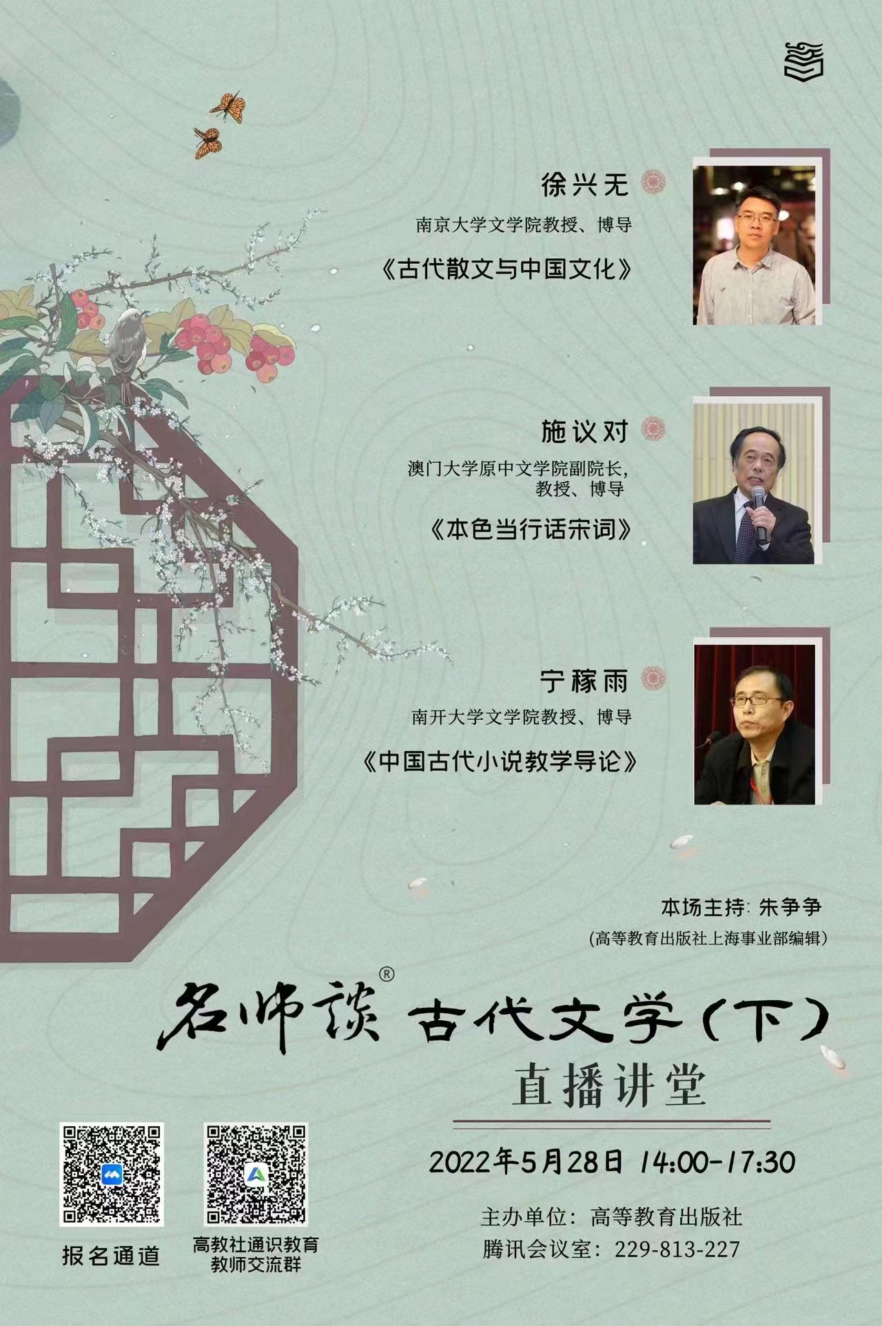 校外学术报告 | 徐兴无、施议对、宁稼雨:名师谈古代文学(下) 5月28日14:00-17:30