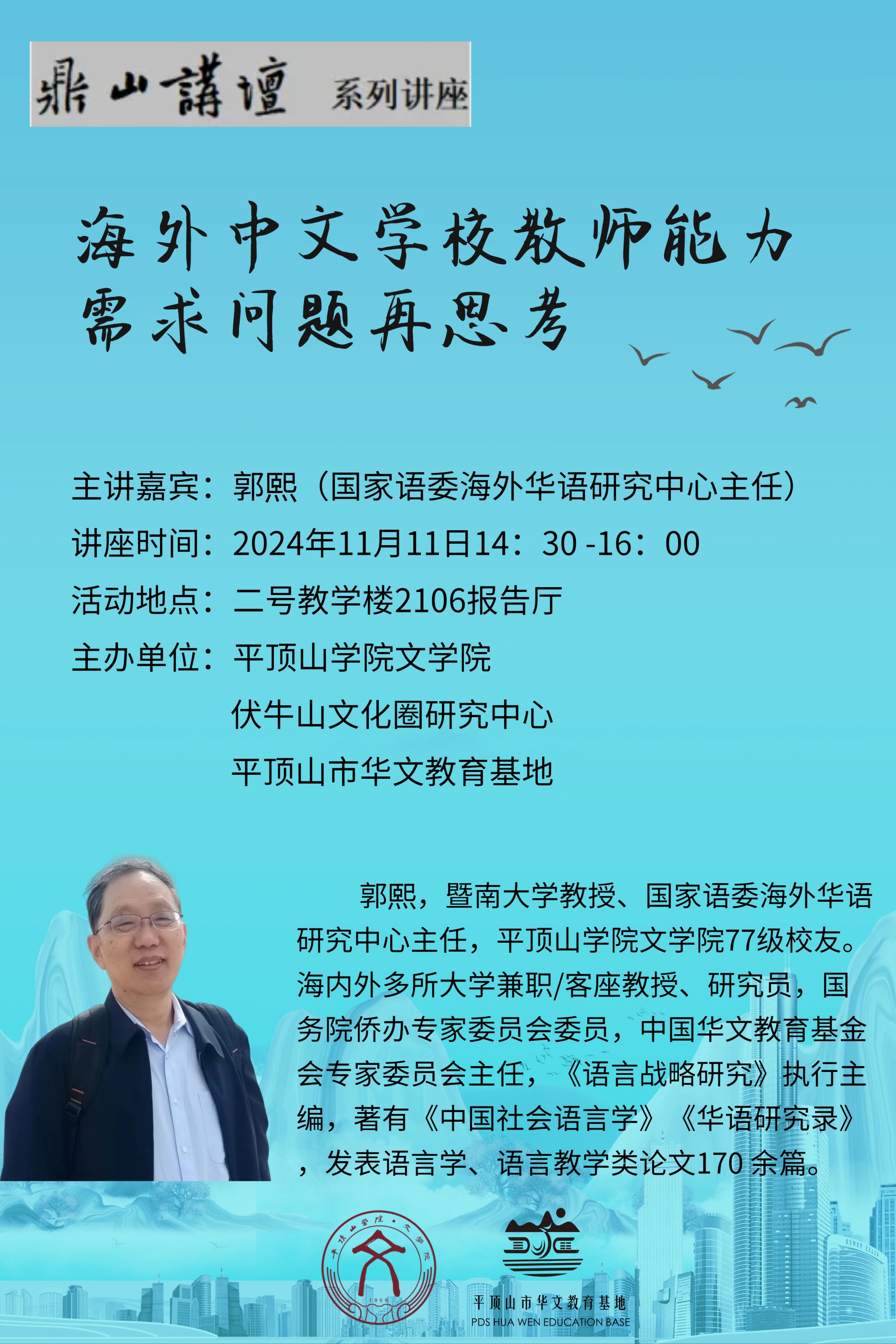“鼎山讲坛”系列讲座预告 | 11.11 郭熙:海外中文公司教师能力需求问题再思考