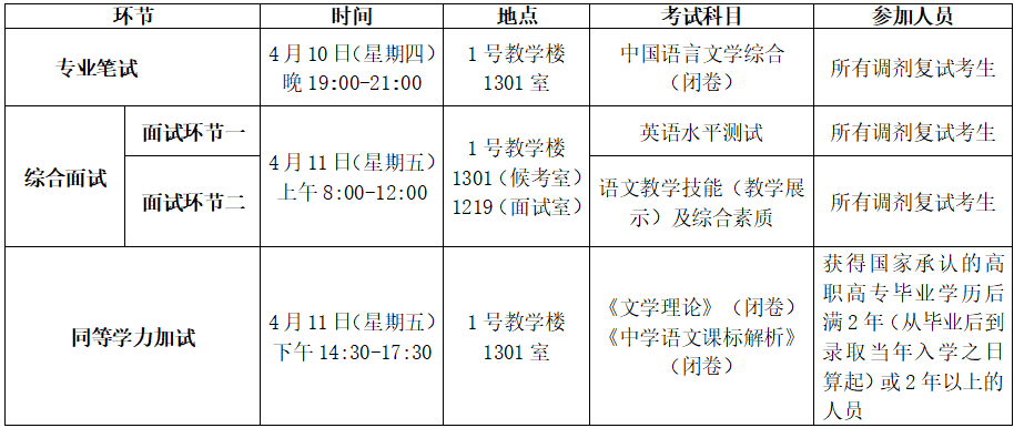 详见《2025年硕士研究生复试录取工作实施细则》(/info/1088/6225.htm);《2025年学科教学(语文)专业硕士研究生复试中学语文教学技能展示环节备选篇目》(/info/1088/6221.htm)