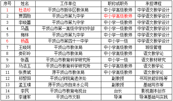 外聘行业教师一览表