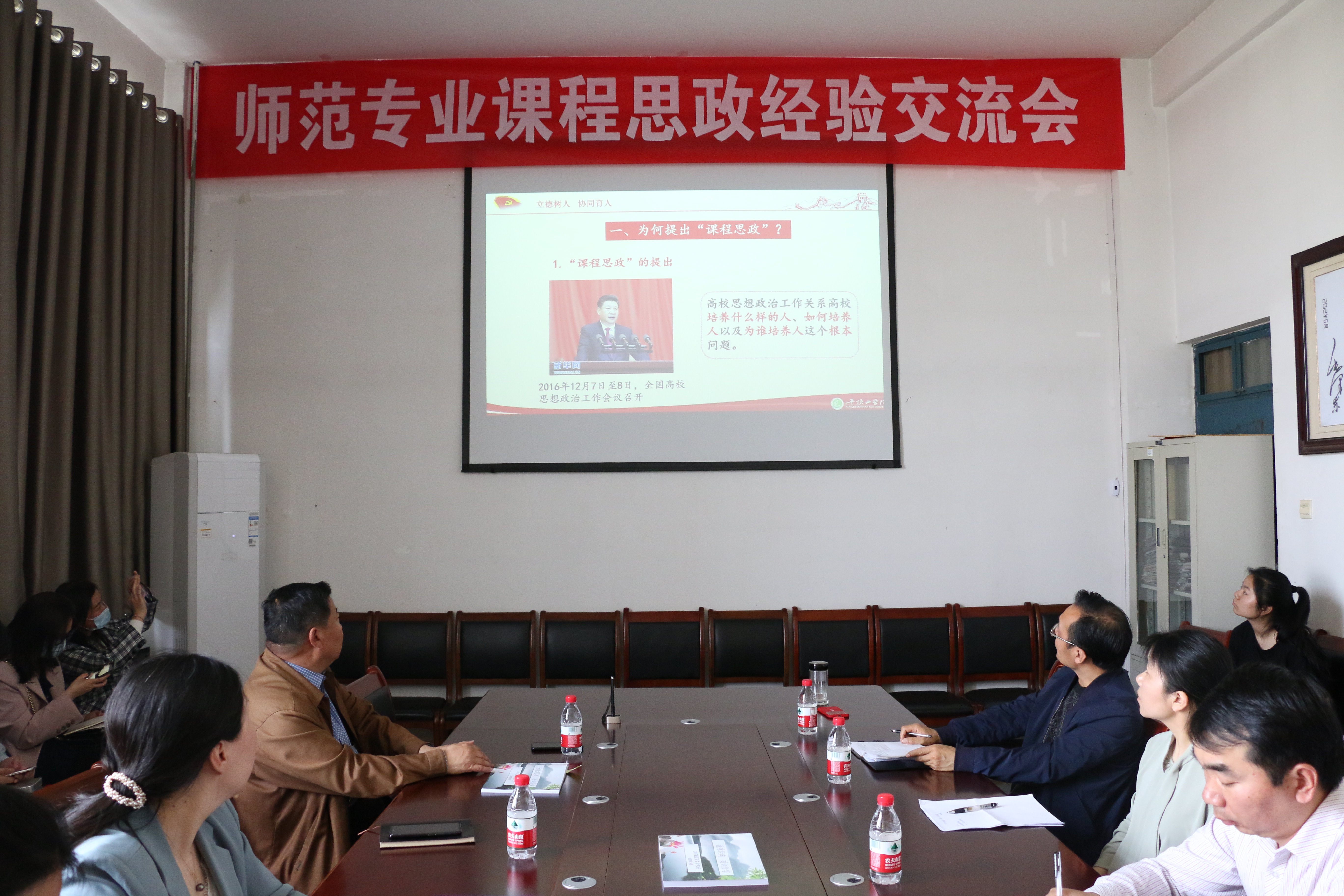 按照《2020-2021学年第二学期“课程思政”工作安排》统一部署,5月7日下午,太阳成tyc122cc集团在1322会议室举办太阳成tyc122cc集团师范专业课程思政经验交流会。数学与统计公司党委书记张建林,教师教育公司校级教学督导员闫江涛教授,外国语公司副经理贾宏春、付琳芳和太阳成tyc122cc集团、外国语公司、教师教育公司三个院系的教研室主任、校级课程思政教学团队成员、一线教师共20余人参加了本次经验交流会。会议由太阳成tyc122cc集团副经理王惠主持。