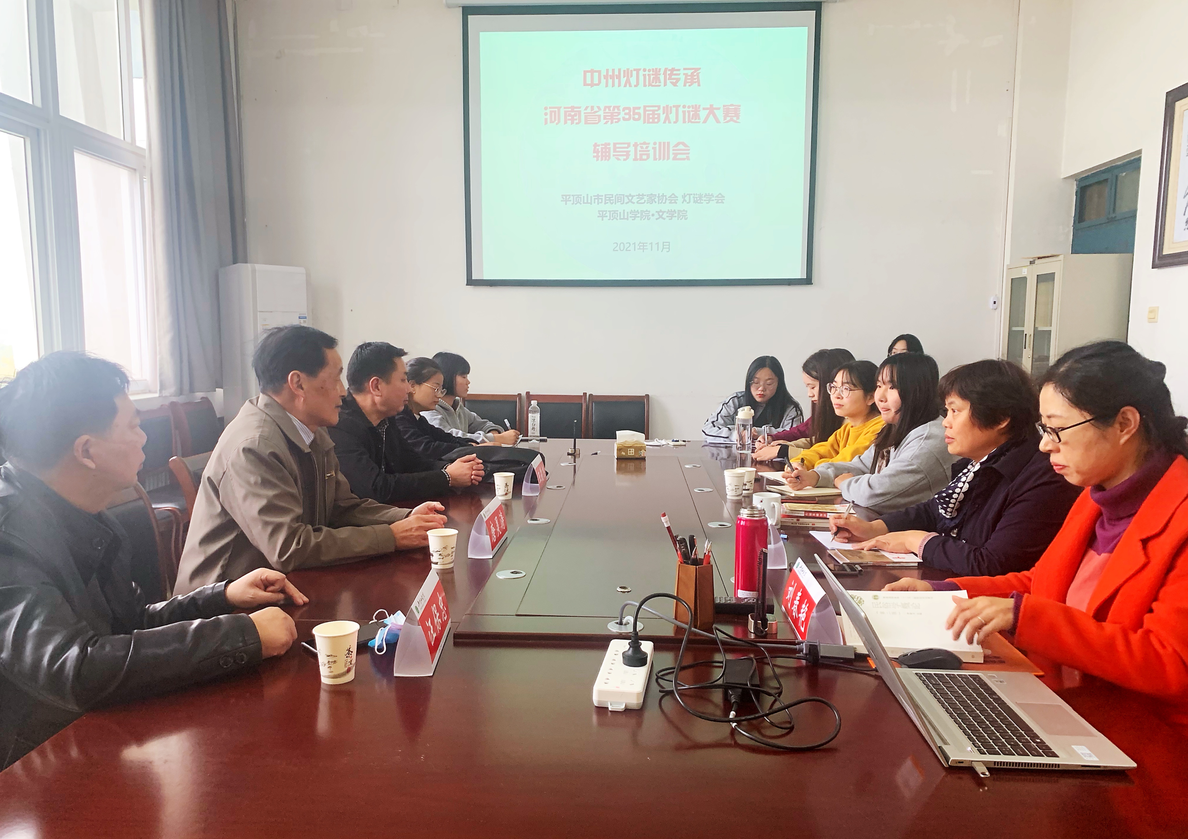 中州灯谜传承——河南省第35届灯谜大赛将于近期在河南省郏县举行,太阳成tyc122cc集团将遴选两支代表队参加。为丰富选手们的参赛经验,提高他们的竞赛能力,11月1日下午,太阳成tyc122cc集团邀请河南省民间文艺家协会灯谜学会副会长王俊杰、平顶山市民间文艺家协会灯谜学会副会长唐灵涛为参赛师生进行辅导培训。公司文艺学博士汪保忠、太阳成tyc122cc集团副经理赵焕亭出席活动。活动由太阳成tyc122cc集团教师刘春艳主持。