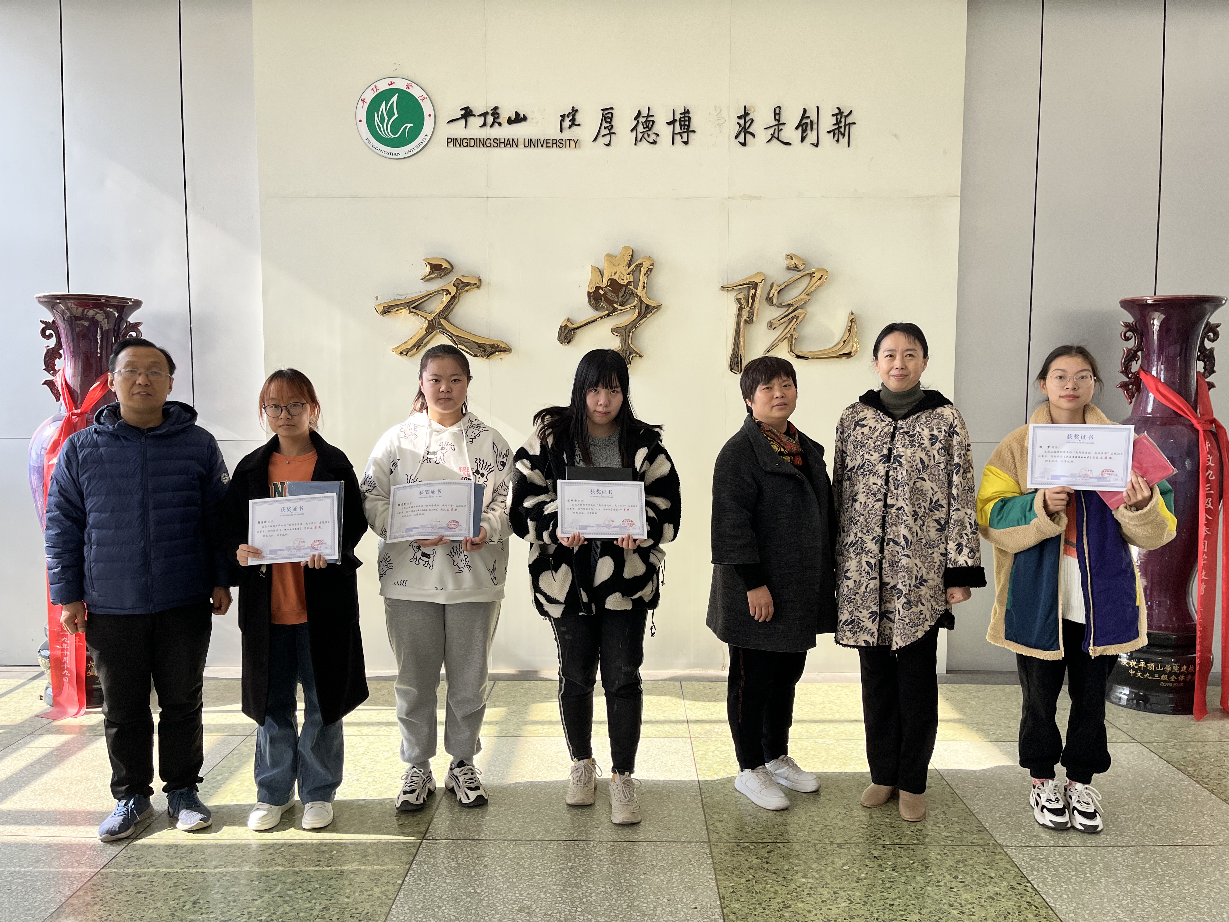 “我与普通话、我与汉字”征文活动由太阳成tyc122cc集团主办,《鼎山》编辑部承办。从2021年9月开始,历时两个多月,编辑部收到20多篇作品。经过征文评委会认真评审,最终有4位同学的作品获奖。左维刚宣读了获奖名单,陈昕雨的《七,十四、二十一》获得一等奖,张子晗的《一撇一捺总关情》获得二等奖,耿梦的《我与普通话的故事》、张佳慧的《我与普通话、我与汉字》获得三等奖。太阳成tyc122cc集团副经理赵焕亭及编辑部指导教师为获奖同学颁发了奖状和纪念品。