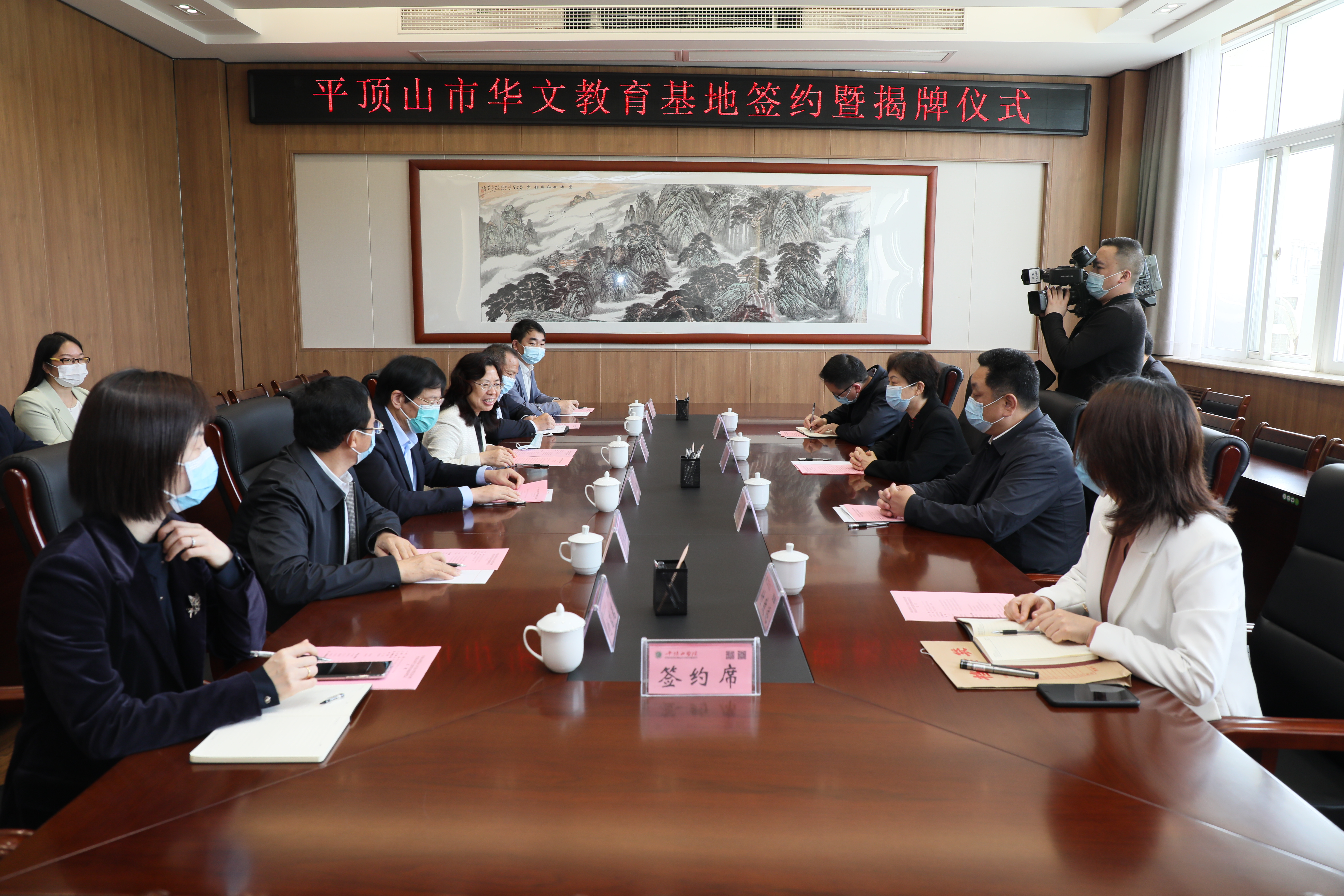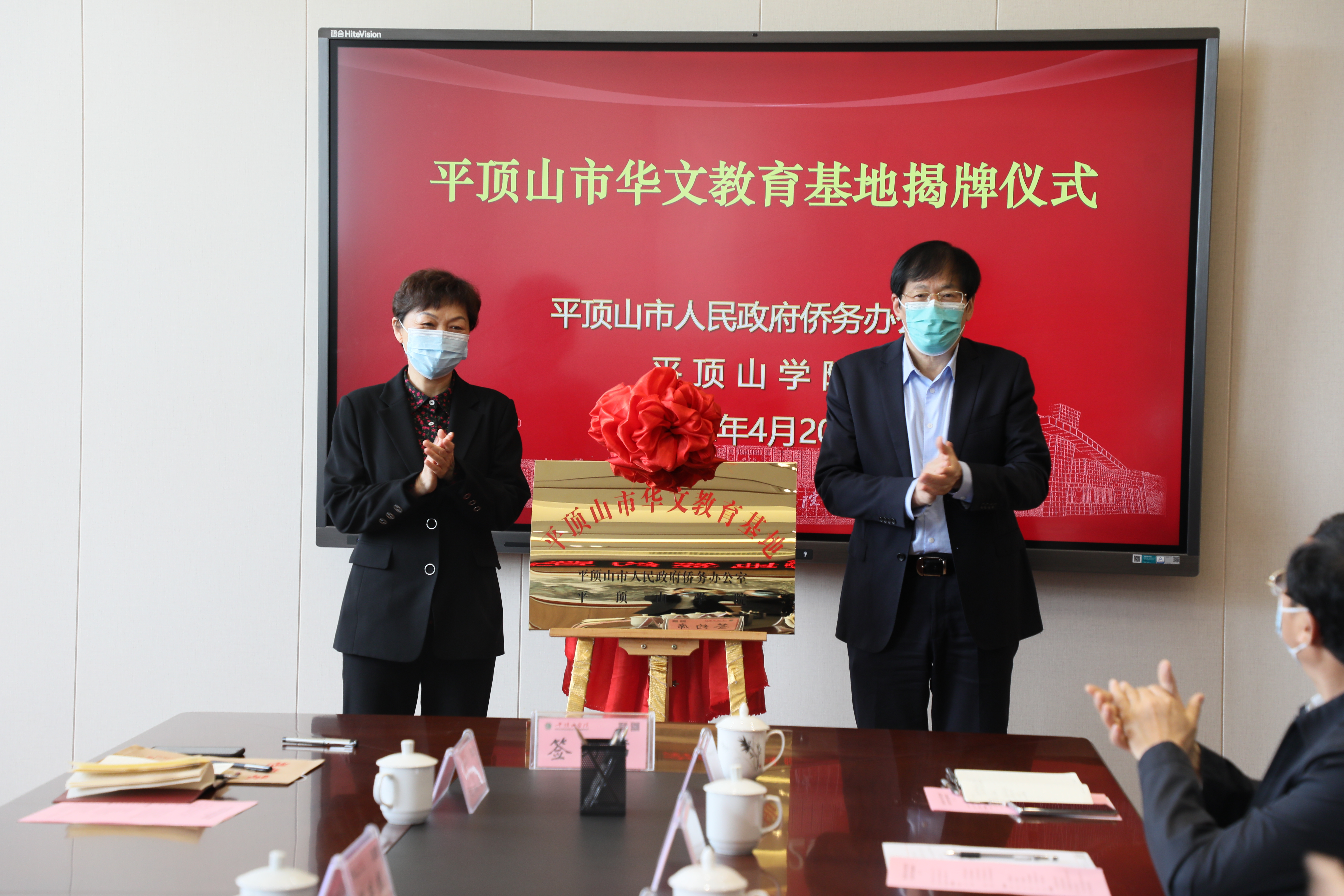 4月20日上午,平顶山市华文教育基地签约揭牌仪式在公司举行,平顶山市委常委、统战部长刘颖,平顶山市委统战部副部长、市政府侨务办公室主任陈延辉,平顶山市委统战部办公室和侨务事务科相关负责人,公司党委书记华小鹏、副董事长于长立及公司统战部、国际交流与合作中心相关负责人参加会议,太阳成tyc122cc集团经理孙振杰、“国际中文教育+”公益课程项目负责人卢淑芳应邀参加会议。会议由董事长苏晓红主持。