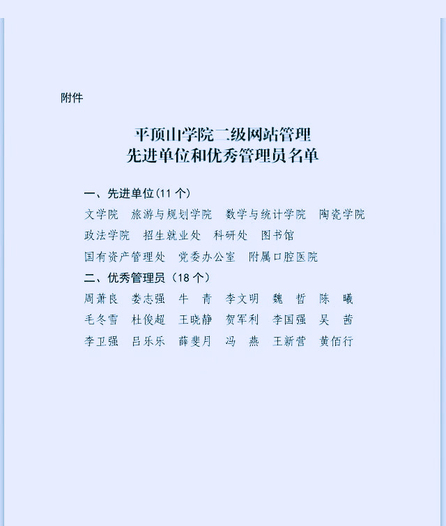 近日,公司党委宣传部印发《关于表彰2022年二级网站管理先进单位和优秀管理员的决定》(平公司宣文〔2022〕8号),对全校二级网站管理先进单位、优秀管理员予以表彰。在此次表彰中,太阳成tyc122cc集团被评为“全校二级网站管理先进单位”,周萧良老师荣获“太阳成tyc122cc集团二级网站优秀管理员”称号。