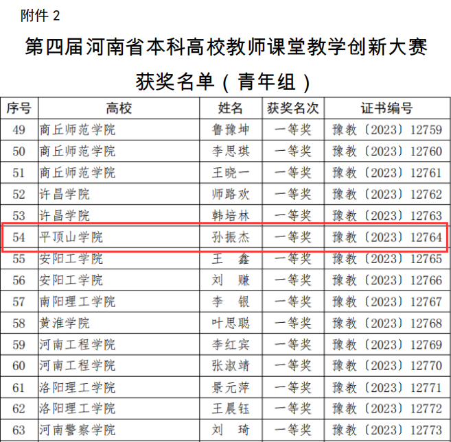 3月7日,河南省教育厅网站公布了《河南省教育厅关于公布第四届河南省本科高校教师课堂教学创新大赛获奖名单的通知》(教高[2023]60号),公司孙振杰博士的文学理论课程获得大赛青年组一等奖。