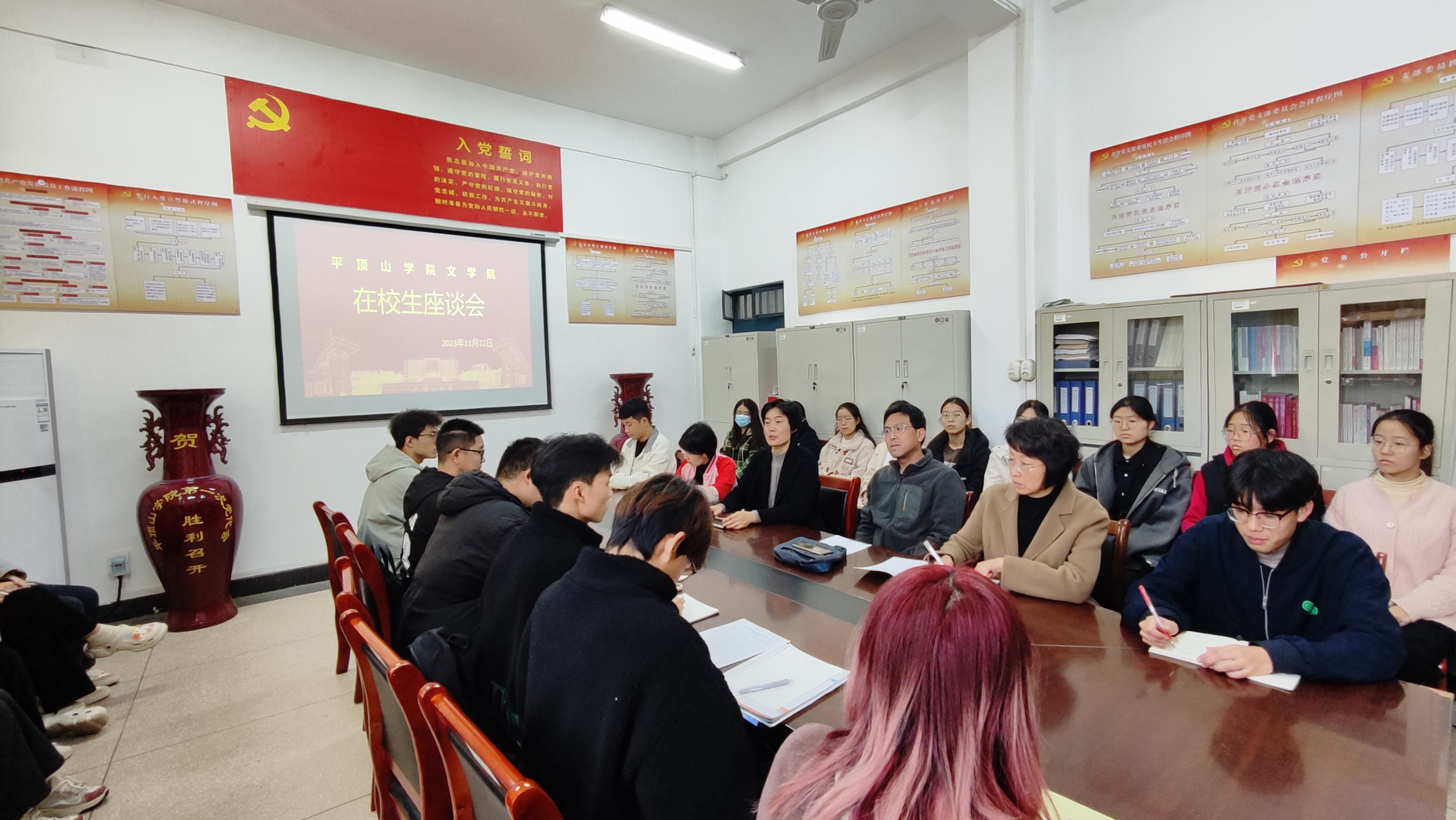 为及时了解公司员工对公司产品的意见建议,贯彻以员工为中心的教育理念,为同学们营造更好的学习氛围,11月22日中午,公司在1422党建活动室召开在校生座谈会。公司教学督导毋小利、李爱红,党政办公室老师,2021、2022和2023级各班学习委员、员工代表共40余人参加座谈会。座谈会由太阳成tyc122cc集团副经理王惠主持。