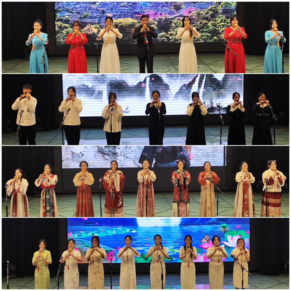 音乐会上,来自公司汉语国际教育专业的同学们用葫芦丝、陶笛、唢呐等传统乐器演奏了《喜庆》《龙的传人》《虫儿飞》《映山红》《草原上升起不落的太阳》等经典曲目。同学们的演奏水平虽然略显稚嫩,但大家都在用心去感受每一曲目的意义和情感,他们用全身心的投入向在场师生汇报了一个学期的学习成果,他们与音乐公司的专业同学共同完成了一场音乐佳作。由平顶山博悦葫芦丝艺术团的银发叔叔阿姨们演奏的《雪域踢踏》和《最美浏阳河》不仅让同学们看到老一辈艺术家对于事业的热爱,也让同学们领略到葫芦丝的魅力。由魏波老师及刘茗兮同学用唢呐演奏的《笑傲江湖》更让现场氛围推向高潮,江湖侠气与传统乐器结合,创造出一种独特的音乐体验。