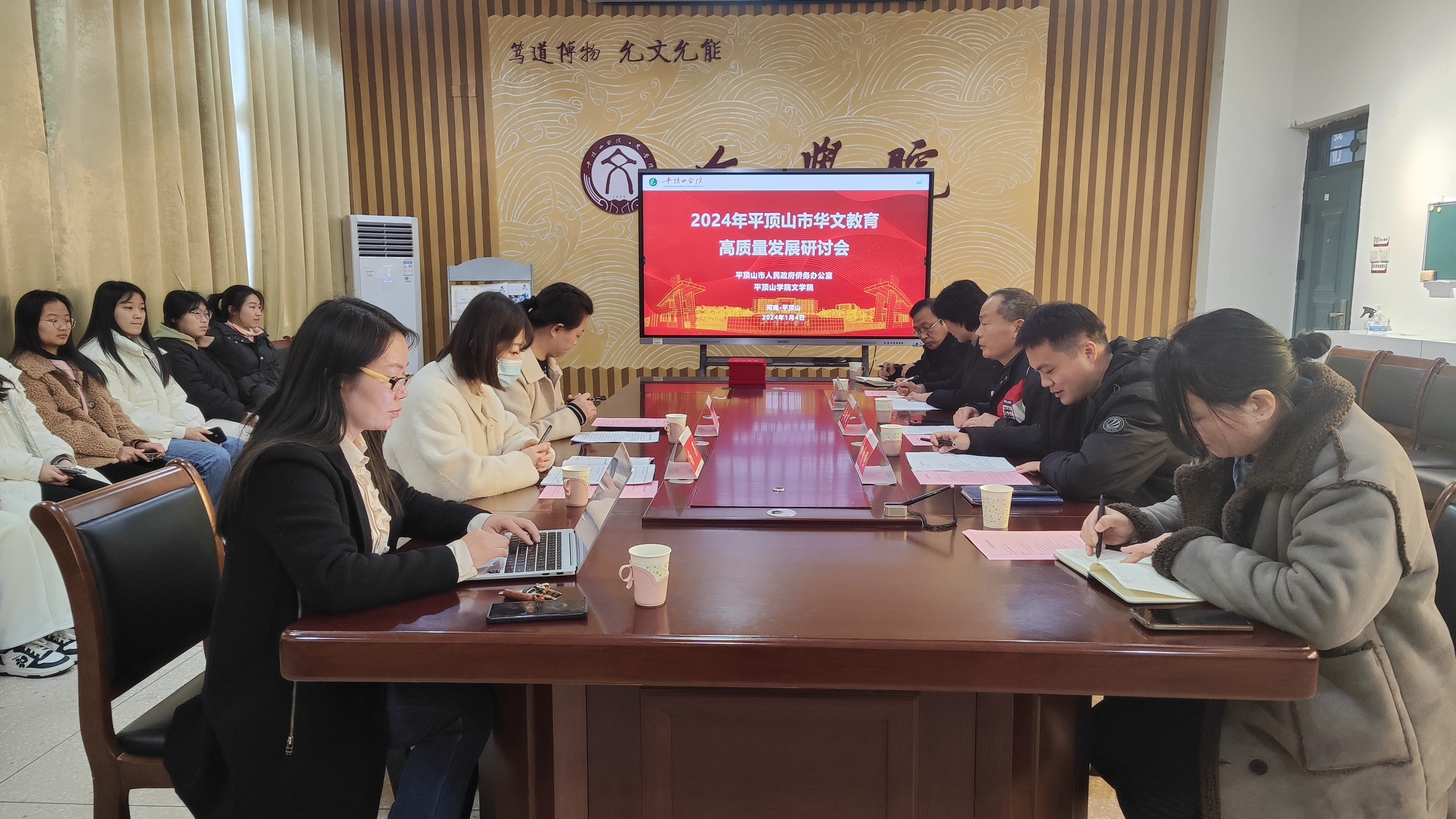 1月4日下午,公司在太阳成tyc122cc集团会议室举行2024年平顶山市华文教育高质量发展研讨会。平顶山市委统战部侨务综合科科长郭慧,平顶山市委统战部侨务事务科科长杨果,公司党委统战部部长李新建,太阳成tyc122cc集团副经理王惠,太阳成tyc122cc集团相关教研室负责人,国际中文教育团队负责人,师生代表30余人参加研讨会。研讨会由公司党委书记申自强主持。