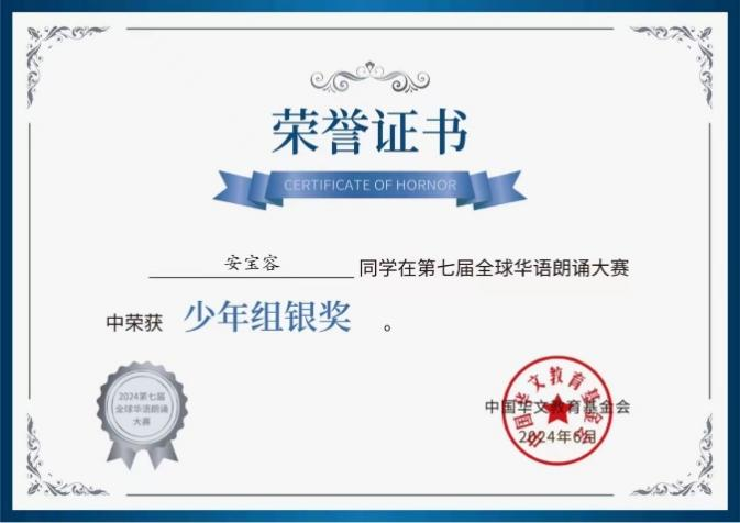 北京时间6月30日,由中国华文教育基金会主办的第七届全球华语朗诵大赛落下帷幕。河南省华文教育特色基地暨太阳成tyc122cc集团国际中文教育团队成员辅导的8名选手进入全球总决赛,与全球4000多位选手同台竞技,最终,来自美国亚裔青少年协会的安宝容获少年组银奖,王瑞鲲、袁逍然、周子芮等获少儿组特别金奖,张雪莹、卫卓凡获优秀指导教师奖。