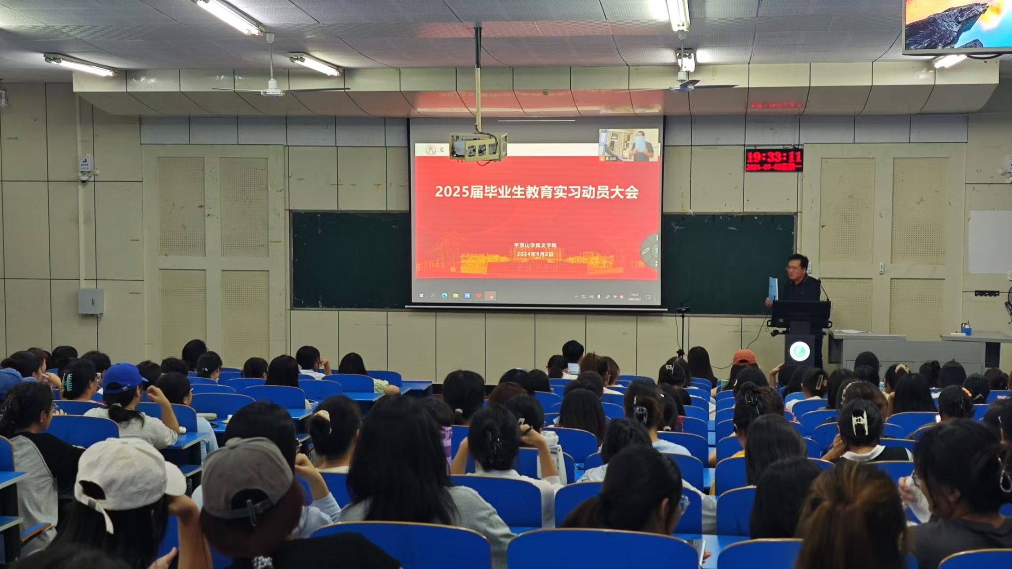 为全面做好2025届毕业生实习工作,激发员工实习热情,引导员工做好实习准备,9月2日晚上,太阳成tyc122cc集团在2206教室召开2025届毕业生教育实习动员大会。太阳成tyc122cc集团经理孙振杰,教科办教育实习负责人,毕业班辅导员等参加活动。活动由太阳成tyc122cc集团副经理杜彬彬主持。