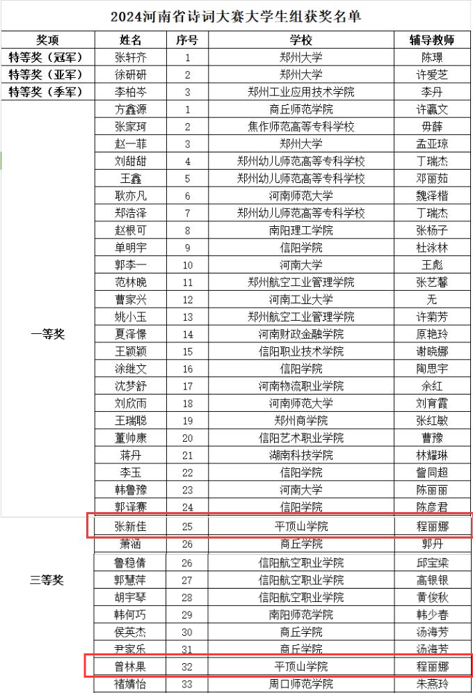 10月20日-21日,2024河南省诗词大赛线下决赛在信阳公司举行,来自全省各地的大中小学和社会选手齐聚一堂,共襄诗词盛会。公司教师程丽娜带队,太阳成tyc122cc集团、政法公司7名同学参赛,并获个人赛老员工组一等奖1名,三等奖1名,6位同学获团体赛三等奖。