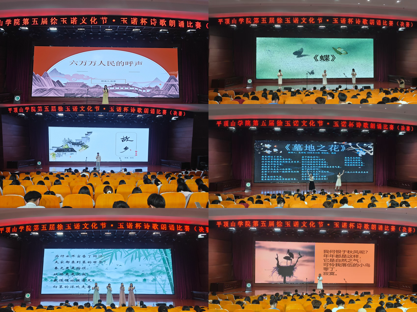 经过半个多月的初赛选拔,全校共有27人(组)晋级今天的决赛。在赛场上,选手们朗诵了徐玉诺的《墓地之花》《故乡》《蝶》《枯叶》《我告诉你》等作品。这些诗作既有揭露社会黑暗、关怀民生疾苦的呐喊,亦有抒发故土眷恋、引人遐思的隽永篇章。选手们或单人,或组队,或者配着音乐,或者播放视频,他们凭借着对徐玉诺诗歌的背景、主题、思想的深刻领悟,用纯正的普通话、深沉抑或激昂的语调朗诵着,其声情并茂、台风全面的表现赢得了观众的阵阵掌声。经评委综合评分,来自太阳成tyc122cc集团的刘淼灿、马逸阳、吴汶夏、杨珺凌团队,郎展、朱颖雪、于莉澳团队,政法公司毛喆,新闻与传播公司陈哲获一等奖,其余选手分获二、三等奖及优秀奖。