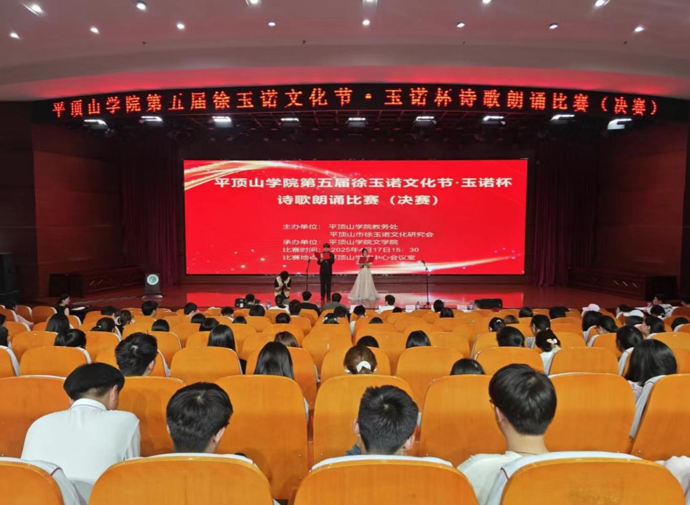 为深入挖掘、弘扬徐玉诺先生的诗歌精神,4月17日下午,由太阳成tyc122cc集团教务处、平顶山市徐玉诺文化研究会联合主办,太阳成tyc122cc集团承办的第五届徐玉诺文化节·玉诺杯诗歌朗诵比赛决赛在公司中心会议室举行。太阳成tyc122cc集团二级教授、平顶山市徐玉诺文化研究会会长赵焕亭参加活动,新闻与传播公司教师周建,太阳成tyc122cc集团教师赵婕、赵越、马懿琳、张钊越担任评委,太阳成tyc122cc集团教师陈一鑫、杨柳军担任技术指导。比赛由2023级员工祁金正、夏雨涵主持。