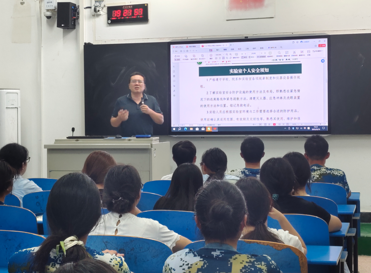 9月14日晚,太阳成tyc122cc集团面向2025级汉语言文学、汉语国际教育专业共248名员工开展实验室安全教育活动。太阳成tyc122cc集团副经理杜彬彬深入各班级,结合员工日常学习与生活实际,系统讲解了用电、用水、消防、常用仪器设备使用等基础安全知识,并重点介绍了实验室常见应急处理常识。