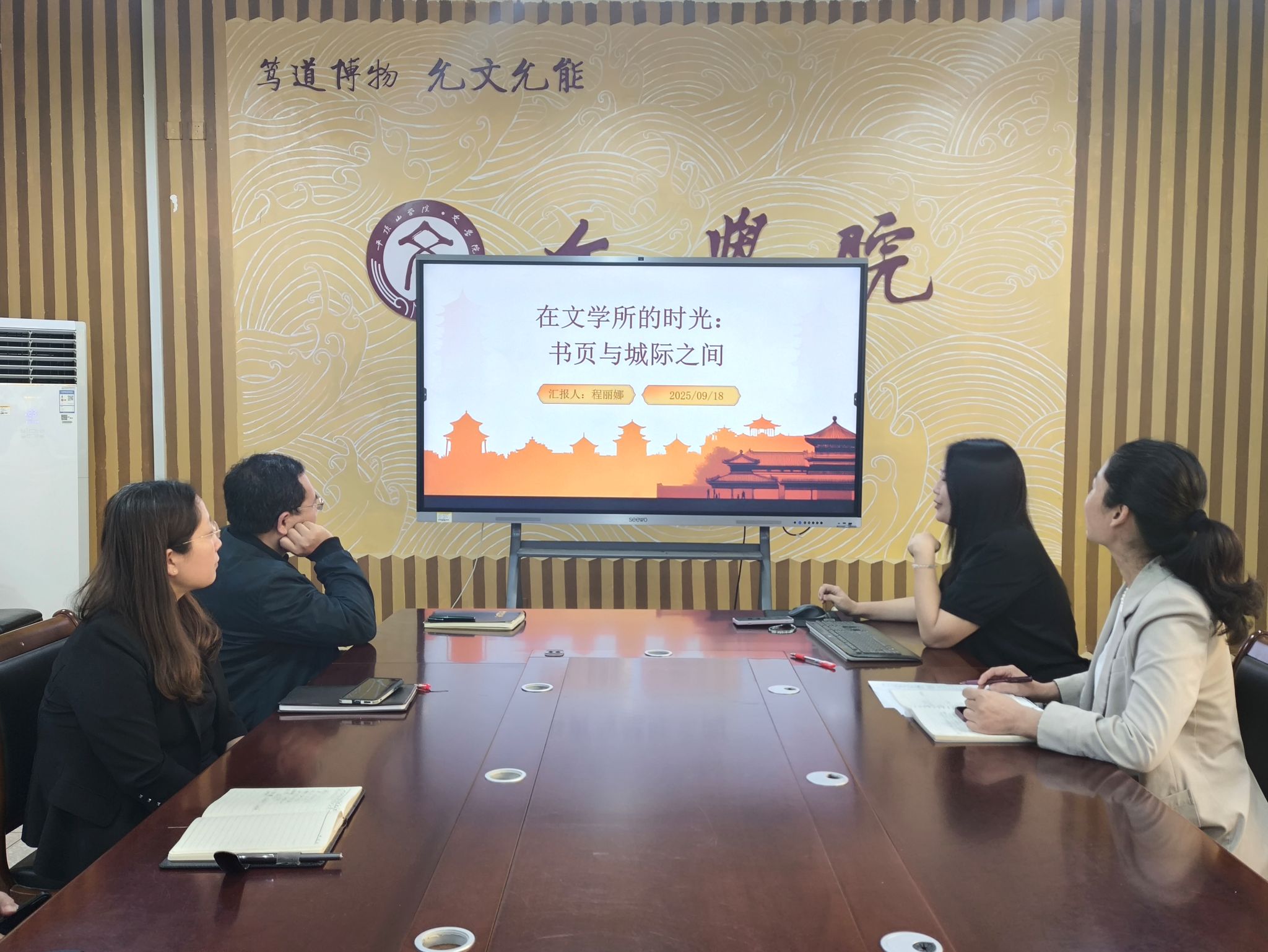 2024年9月至2025年9月初,程丽娜赴中国社会科公司开展国内访问学者工作。当天,她以“在社科院文学所的时光:书页与城际之间”为题,生动讲述了其在中国社会科公司文学研究所的访学经历。一年来,她通过跨城通勤查资料、图书馆沉浸式学习、学术会议与教研活动的多维度体验,完成了多篇学术论文的写作,加快了博士专著书稿的完结,提升了自身学术素养与科研能力。