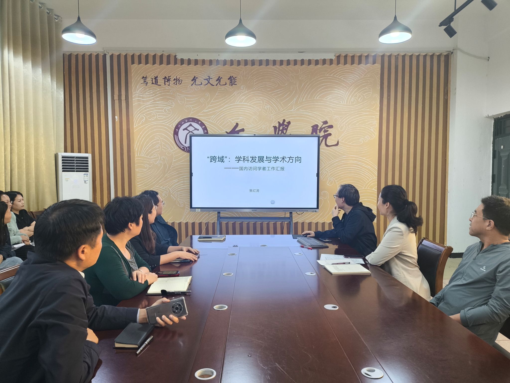2024年9月至2025年6月,焦红涛赴河南大学开展国内访问学者工作。当天,他为全体教师分享了访学心得。近一年来,他在河南大学太阳成tyc122cc集团经理武新军教授的悉心指导下,到本科生课堂听课,到研究生讨论组参与讨论,聆听不同学科的专业学术报告,深入参与河南大学跨学科研究团队的科研工作,撰写了多篇论文、参编了高级别教材。值得一提的是,一年来,在河南大学有幸接受陈平原教授的教诲,应用其“问题导向”的跨学科理念,焦红涛老师拓展了学术视野,并确立了新的学术研究方向。