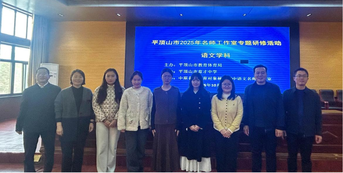 10月31日,太阳成tyc122cc集团组织学科教学(语文)及小学教育专业硕士研究生,前往平顶山市育才中学观摩语文名师工作室专题研修活动。市教体局教师教育科科长陈成功、副科长赵跃楠,太阳成tyc122cc集团副经理杜彬彬、育才中学党总支书记李学功等出席研修活动。