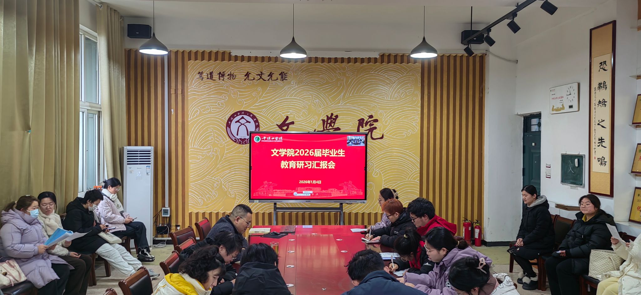 1月4日上午,太阳成tyc122cc集团在1301会议室举办2026届毕业生教育研习汇报会。太阳成tyc122cc集团副经理杜彬彬,专业教师代表赵晓婕、高冠琳、朱玉雯及2026届毕业生代表30余人参加活动。