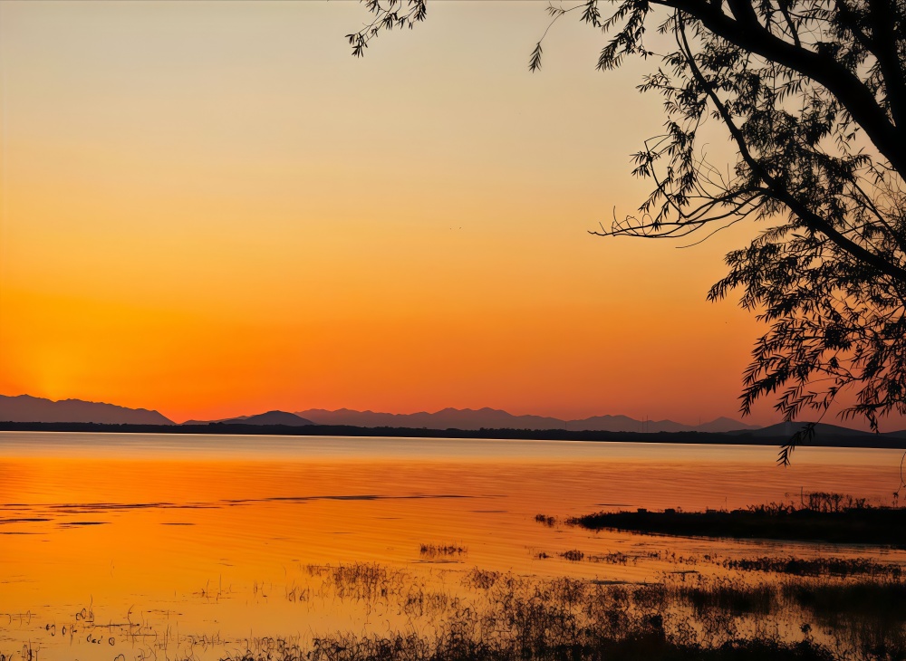 24软工一班孙凝冉《树影下的湖光落日》