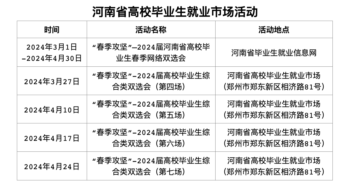 2024年河南省高校毕业生就业市场信息集锦