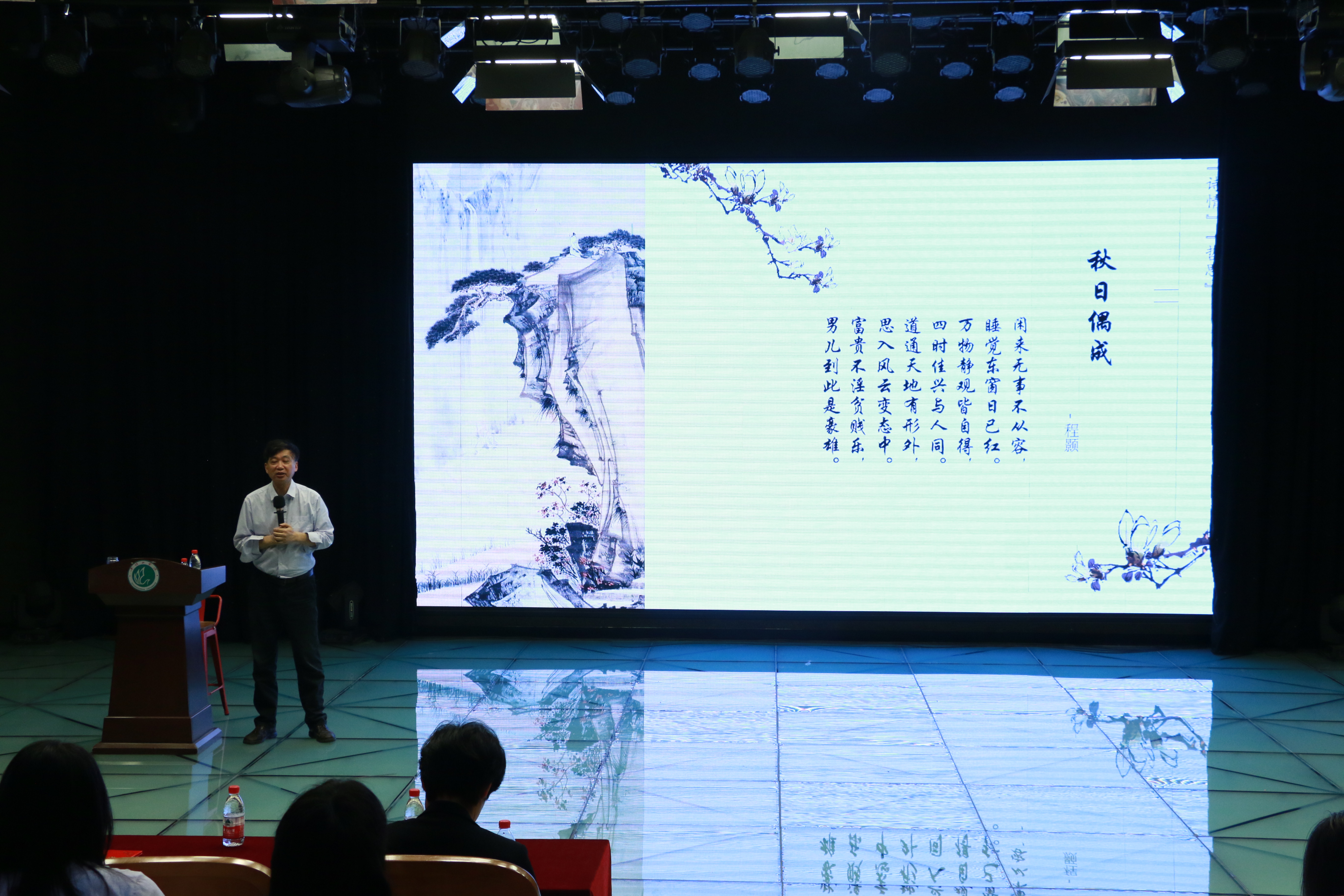 黄意明教授指出,诗歌以抒情为主,从“诗言志”到“诗缘情”,各有侧重,但抒情和说理并不矛盾,情感和哲理形成了古代诗词感人至深的力量。黄教授认为,古今诗心、文心之相通。我们重读古代诗歌,既要明晰其中的文化意义,又要予以这些古诗新的时代阐释,赋予诗歌新的生命。本次讲座,更新了同学们古诗现代化解读的新方式,对提升古诗鉴赏能力有积极意义。