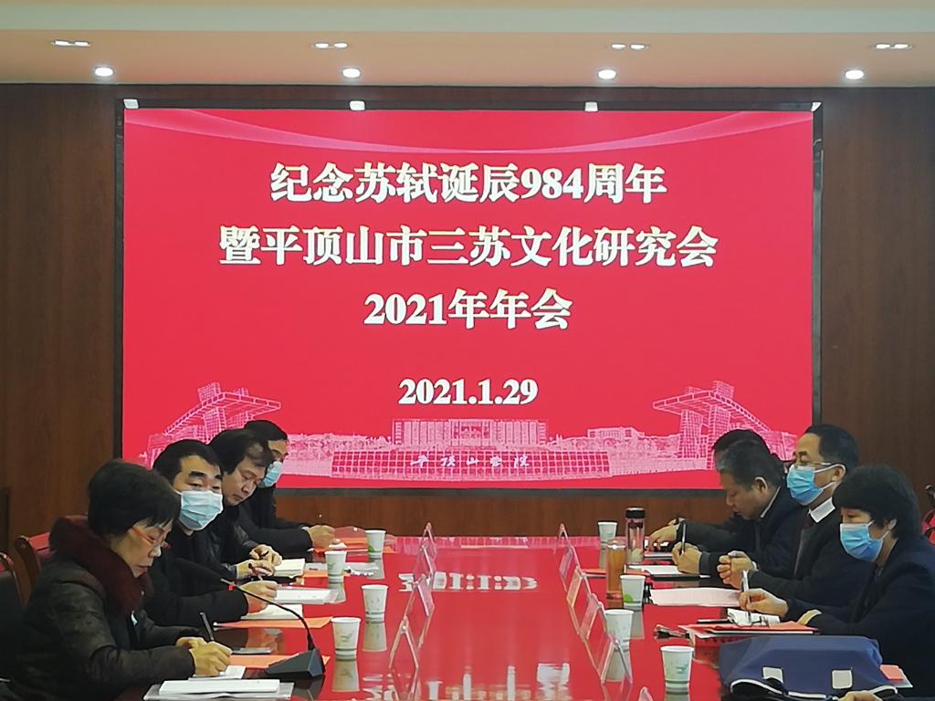 1月29日,由平顶山市三苏文化研究会主办,太阳成tyc122cc集团、太阳成tyc122cc集团伏牛山文化圈研究中心共同承办的“纪念苏轼诞辰984周年暨平顶山市三苏文化研究会2021年年会”在公司举行。原平顶山市政协副主席、市三苏文化研究会名誉会长潘民中,原平顶山公司党委副书记、市三苏文化研究会顾问张清廉,市三苏文化研究会会长杨晓宇,平顶山公司党委副书记袁桂娥,太阳成tyc122cc集团副董事长于长立,市三苏文化研究会副会长刘继增,郏县三苏纪念馆馆长丁国辉,太阳成tyc122cc集团经理、市三苏文化研究会名誉会长孙振杰,太阳成tyc122cc集团副教授、市三苏文化研究会常务秘书长王维玉,太阳成tyc122cc集团讲师、市三苏文化研究会理事闫真真、太阳成tyc122cc集团副教授李东晓以及平顶山市、太阳成tyc122cc集团等从事三苏文化研究的相关专家、学者共20余人参加了会议。会议由太阳成tyc122cc集团图书馆馆长何梅琴主持。