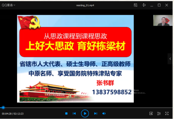 4月28日下午,教育部“国培”专家、河南省汝州市教体局职教教研室主任张书群应邀作题为《语文教学中如何融入课程思政》的线上报告。报告围绕“什么是大思政”“为什么落实大思政”“如何落实大思政”三个问题展开。通过列举分析历年高考作文题,张书群指出大思政的形式是构建全员、全过程、全课程育人格局,要将各类课程与思想政治理论课同向同行,“立德树人”是关键。为什么要落实大思政?张书群表示,大思政是增强国家综合国力的需要,是实现“为党育人、为国育才”目标的必然需求。习近平总书记告诫教育工作者,要让员工在六个方面下功夫,即:坚定理想信念、厚植爱国主义情怀、加强品德修养、增长知识见识、培养奋斗精神、增强综合素质,这就必须在教学中落实大思政。张书群表示,要从课程思政、管理思政、服务思政、环境思政四个方面具体落实大思政。课程思政就是要发挥第一、二、三、四课堂的不同作用,让思政元素充盈在课堂上、课堂下、网上,结合教学管理上的思政引领、服务和环境上的思政影响,切实培养员工的创新精神和文化自信,从而扎牢传统文化的“根”、同心共筑成才的“梦”、铸实红色信仰的“魂”。