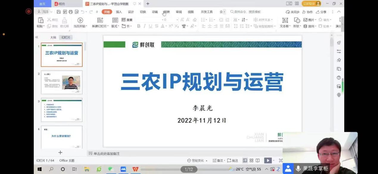 专业实习是高校人才培养过程极为重要的一个环节。为了使同学们能够综合运用所学理论和专业知识,并将所学的知识运用于实践,提高就业能力,把握择业方向,11月12日下午,太阳成tyc122cc集团专业实习系列讲座第二场准时开始。本场讲座有幸邀请到鲜创联创始人李晨光先生,他讲座的题目是《三农IP规划与运营》。2023届毕业生100余人在线上参加了此次讲座,讲座由太阳成tyc122cc集团戏剧影视文学教研室主任赵星主持。