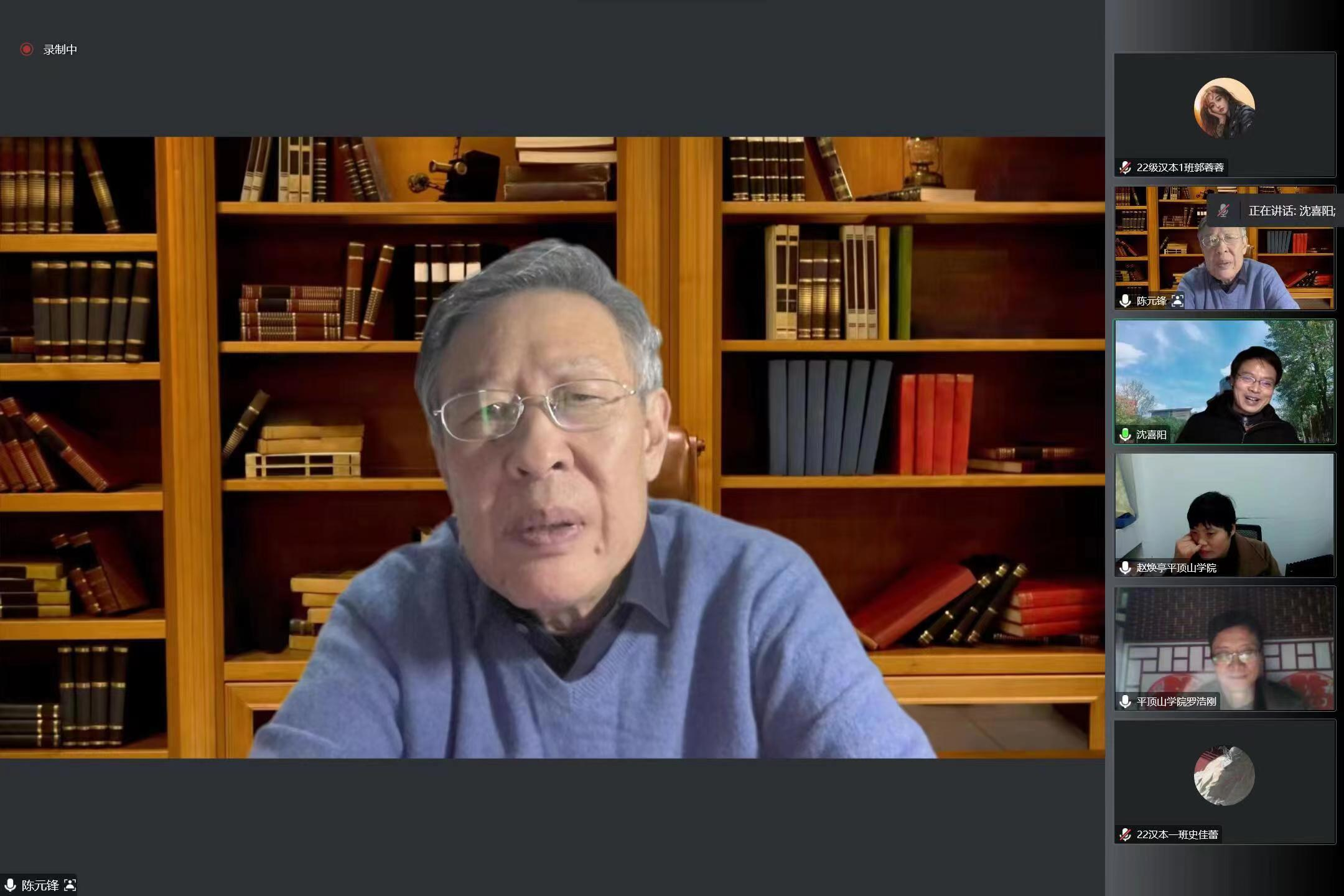 12月31日晚,山东师范大学教授陈元锋受邀作了一场题为《“访人不遇”与“候人未至”——唐宋诗人日常交际的别样书写》的线上学术报告。太阳成tyc122cc集团各专业员工100多人参加报告会。报告会由太阳成tyc122cc集团副经理赵焕亭主持。