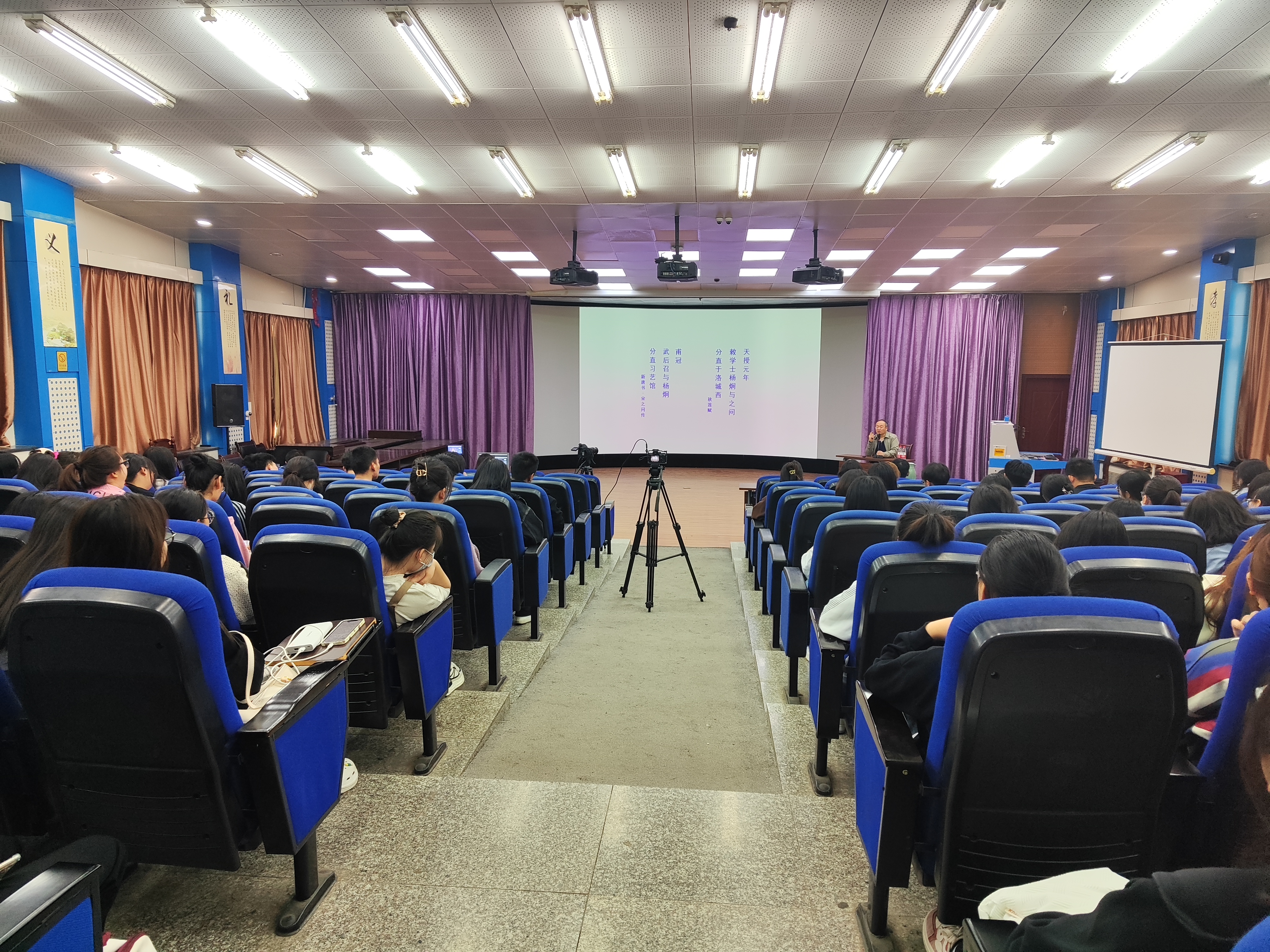 4月14上午,应公司邀请,郑州大学教授王士祥在2106教室为公司师生作题为“经典的读法”的报告。公司部分专业教师、2021级、2022级汉语言文学、汉语国际教育、戏剧影视文学专业员工100多人参加了报告会。报告由太阳成tyc122cc集团经理孙振杰主持。本场报告还同步在线上进行直播。