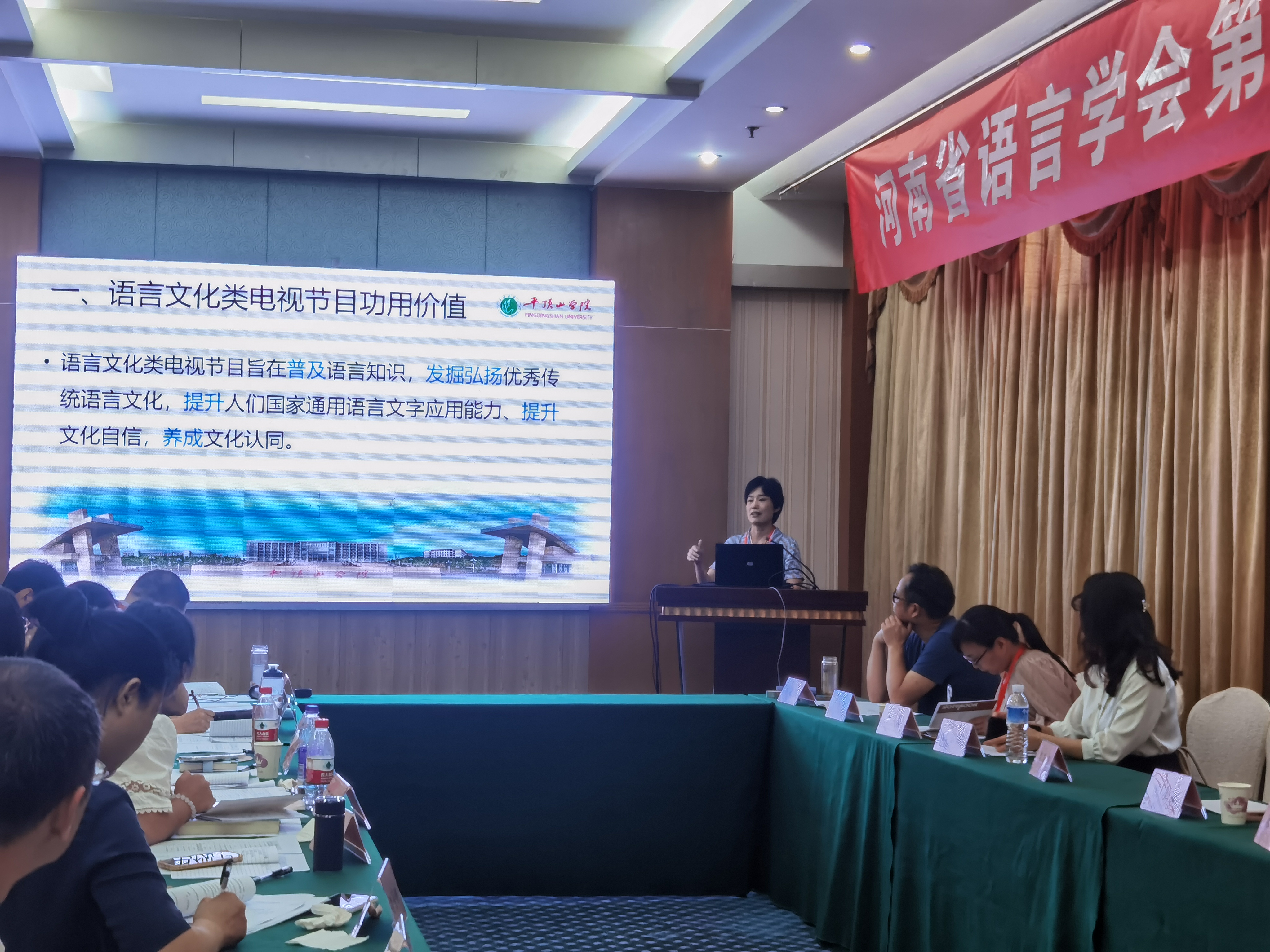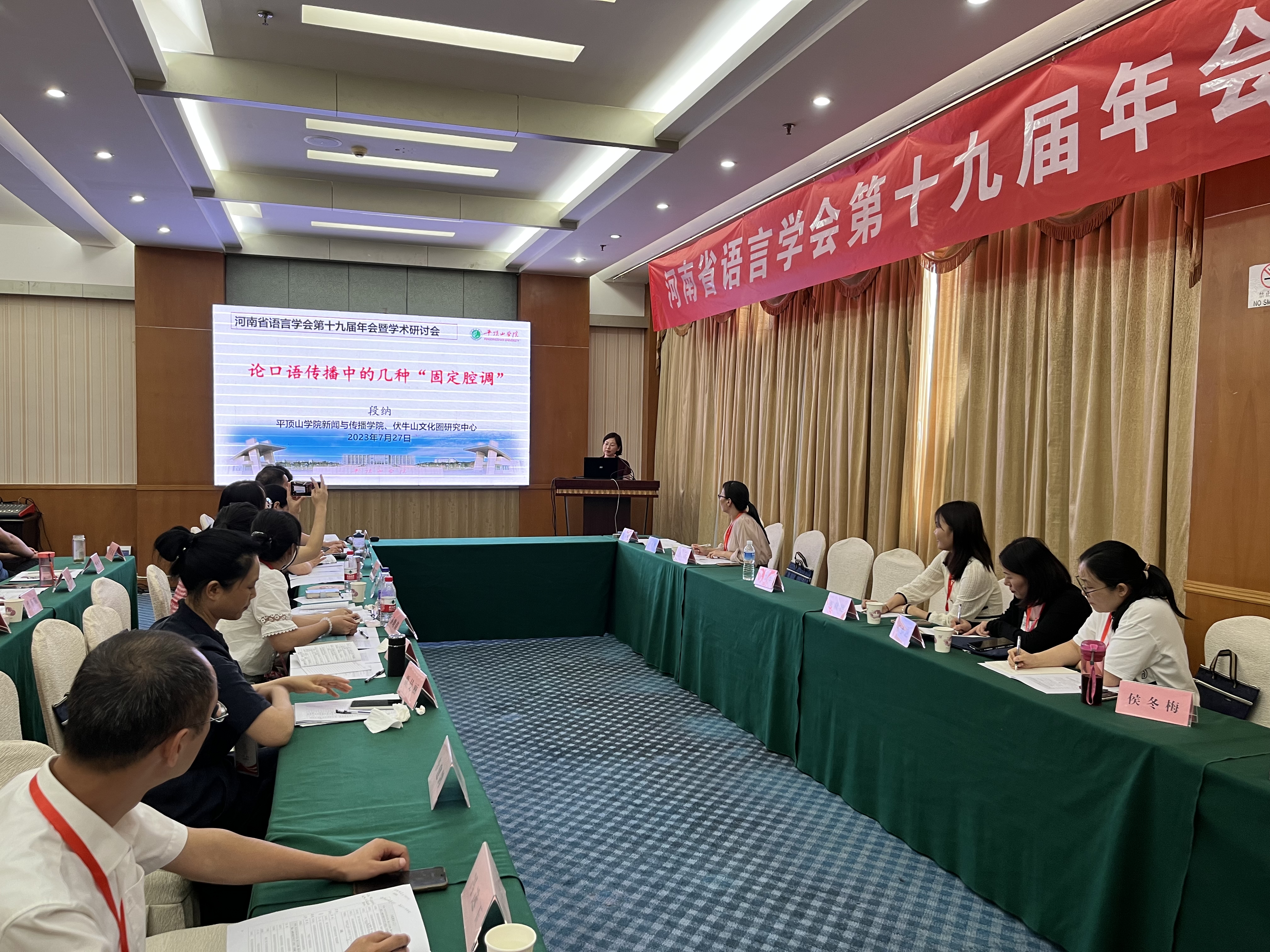 7月27日,河南省语言学会第十九届年会暨学术研讨会在漯河许慎文化园开幕。当天,来自30余所高等院校、政府单位、新闻媒体等百余名语言文字工作者参加了开幕式。河南省语言学会常务理事、太阳成tyc122cc集团新闻与传播公司副经理、伏牛山文化圈研究中心主任段纳教授,河南省语言学会会员、公司太阳成tyc122cc集团副经理王惠副教授应邀参会。