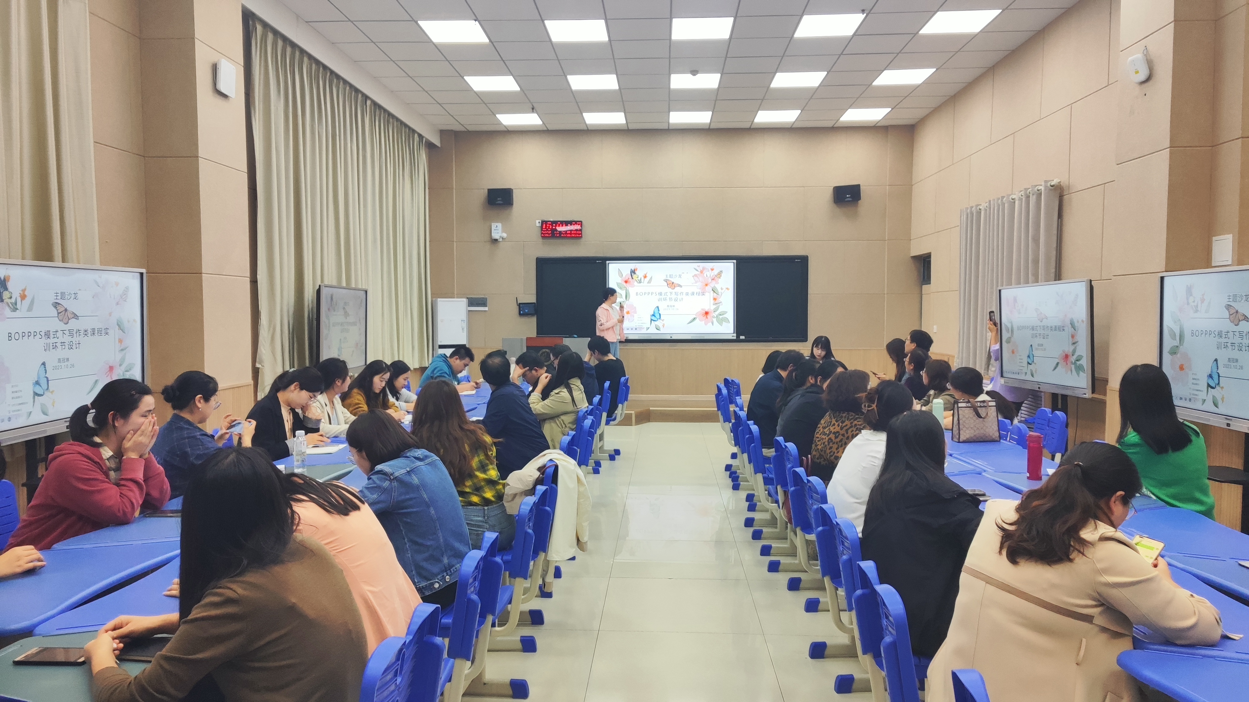 为提高高校教师对BOPPPS教学模式的理解运用能力,提升课堂教学质量,10月26日,公司在图书馆L207举办“BOPPPS模式下写作类课程实训环节设计”主题沙龙,公司青年教师高冠琳主讲,公司2023年新进教师、公司全体教师和其他公司教师代表60余人参加。